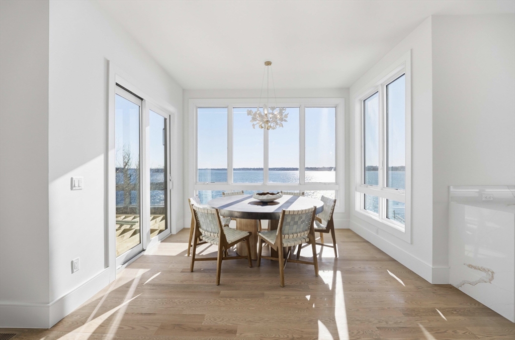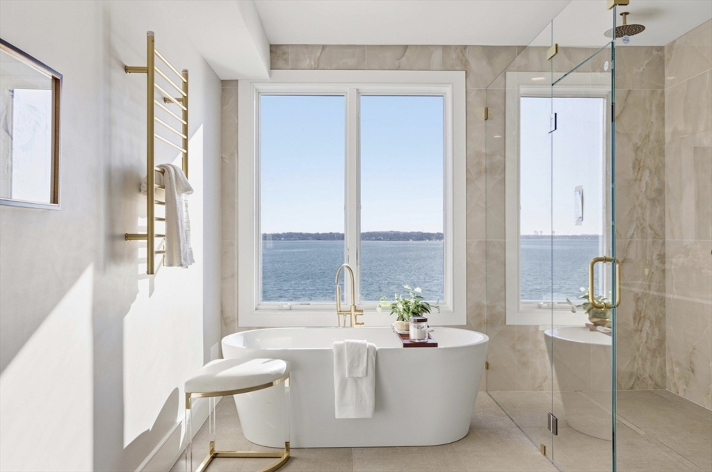 Stunning waterfront home in Squantum with sweeping ocean views from nearly every room. Defined by its nautical charm and breathtaking waterfront setting, this exceptional residence offers 7 bedrooms, 7 full baths, 2 half baths, a private office, media room, and a 3-car garage. Sun-filled living spaces, soaring ceilings, warm wood floors, and a custom kitchen with sleek cabinetry and high-end appliances create a perfect blend of comfort and luxury. Set directly on the water in Quincy’s premier coastal neighborhood, just moments from marinas, beaches, waterfront walks, and with easy access to Boston.