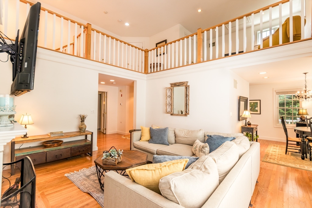 Secure your piece of paradise for year-round living or summer! This private end-unit condo features a wrap-around porch with serene conservation views, two primary suites, open-concept living with cathedral ceilings & fireplace, updated kitchen, hardwood floors, and a spacious basement. Enjoy resort-style amenities: pool, pickle ball, walking trails, and vibrant community activities — all just minutes from Mashpee Commons, beaches, and medical facilities. Turnkey Cape Cod living at its best.