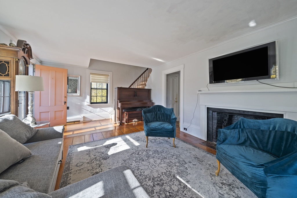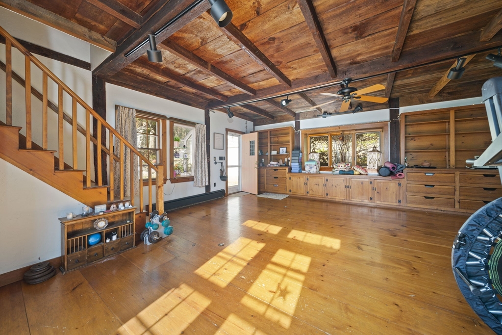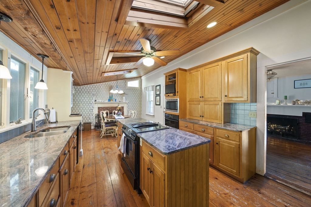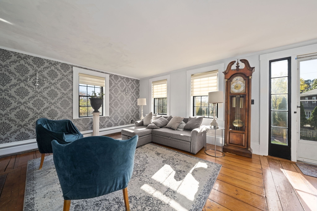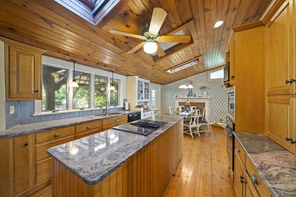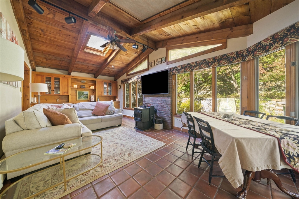 Come home to this spacious, sun-drenched four-bedroom New England farmhouse, where updated living meets timeless charm. From the moment you step inside, you'll appreciate the custom built-ins and the chef-ready kitchen with granite countertops, a center island, and a Sub-Zero appliance. Whether you're relaxing in the huge family room or soaking up the light in the cheery sunroom, comfort is key. Practical features include a first-floor bedroom/full bath and laundry. Need extra space? The huge heated studio above the garage is perfect for a gym, office, or entertaining, featuring its own wet bar! Outside, the setting is beautiful, featuring gorgeous, mature gardens and custom stone patios. This beloved home is truly move-in ready with a new four-bedroom septic system.