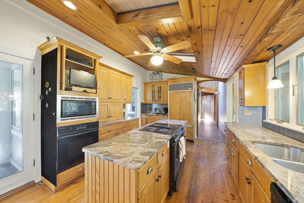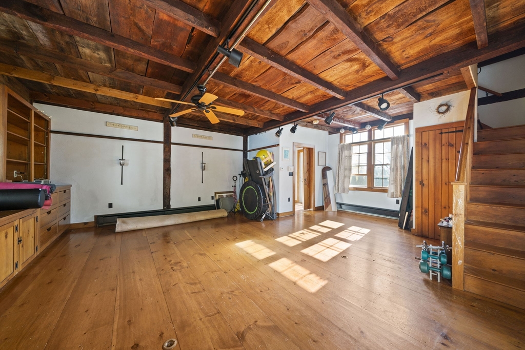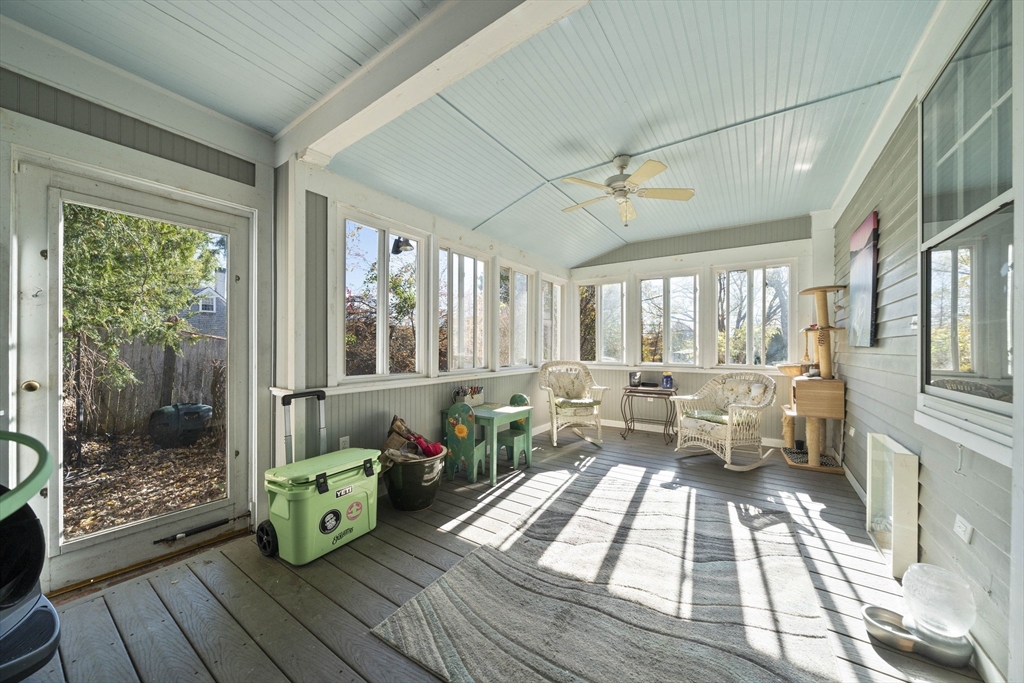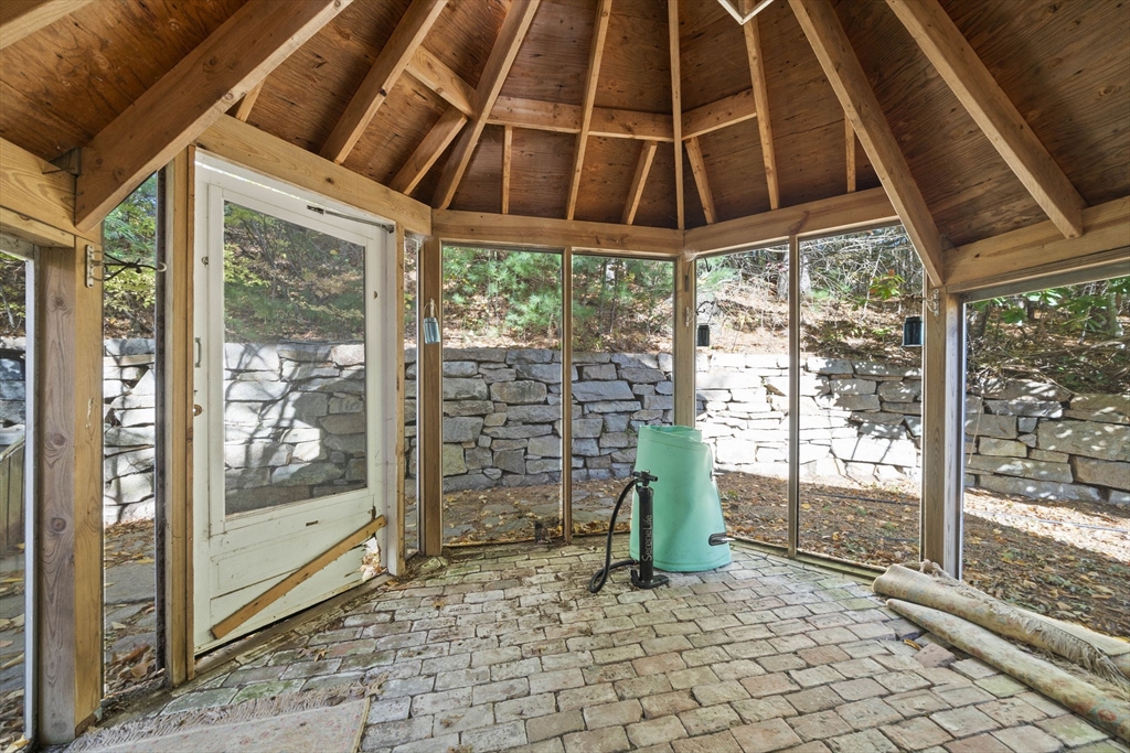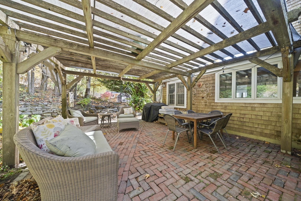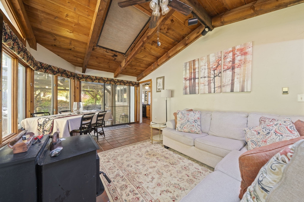 Come home to this spacious, sun-drenched four-bedroom New England farmhouse, where updated living meets timeless charm. From the moment you step inside, you'll appreciate the custom built-ins and the chef-ready kitchen with granite countertops, a center island, and a Sub-Zero appliance. Whether you're relaxing in the huge family room or soaking up the light in the cheery sunroom, comfort is key. Practical features include a first-floor bedroom/full bath and laundry. Need extra space? The huge heated studio above the garage is perfect for a gym, office, or entertaining, featuring its own wet bar! Outside, the setting is beautiful, featuring gorgeous, mature gardens and custom stone patios. This beloved home is truly move-in ready with a new four-bedroom septic system.