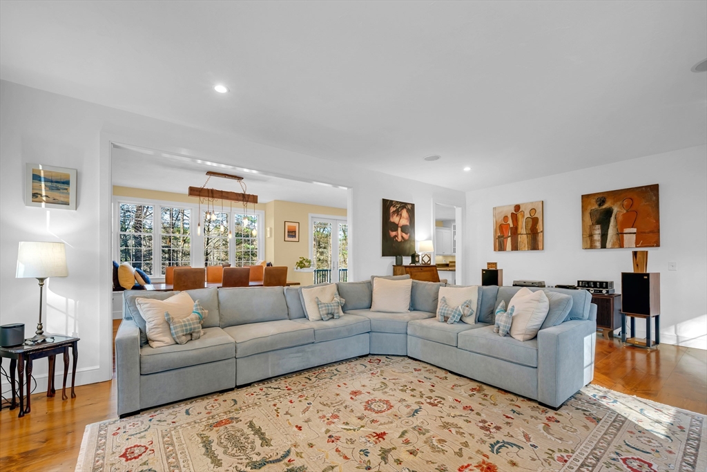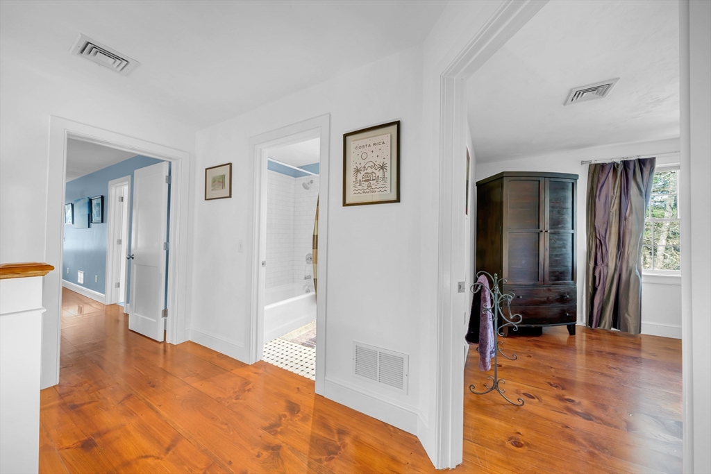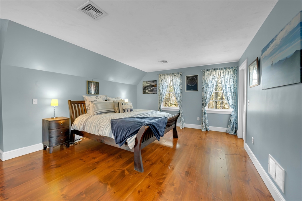Immaculate, meticulously cared for expanded 4 bedroom, 3.5 bath custom cape situated on 2.7 acres. The long paved drive offers privacy, surrounding you in nature. The stunning cathedral foyer welcomes you grandly to this wonderful open concept design, soaring ceilings, & gleaming pine floors. The expansive fireplaced living room flows openly to the beautiful dining area, with built in window seat, & to the beautiful kitchen boasting bead board cabinetry, upgraded stainless appliances, a large center island, & granite counters, with access to the peaceful back TREX deck. Off the front foyer there is a generous home office-flex space. Down the hall, a laundry room, large 1/2 bath, & access to an oversized 2 car garage with epoxy floor, EV charger, & smart garage door opener. There is a separate, spacious guest suite over the garage, with like new 3/4 bath. The main 2nd floor features a grand main suite, with new 3/4 tiled bath, & walk in closet, plus 2 more lovely bedrooms, & full bath!