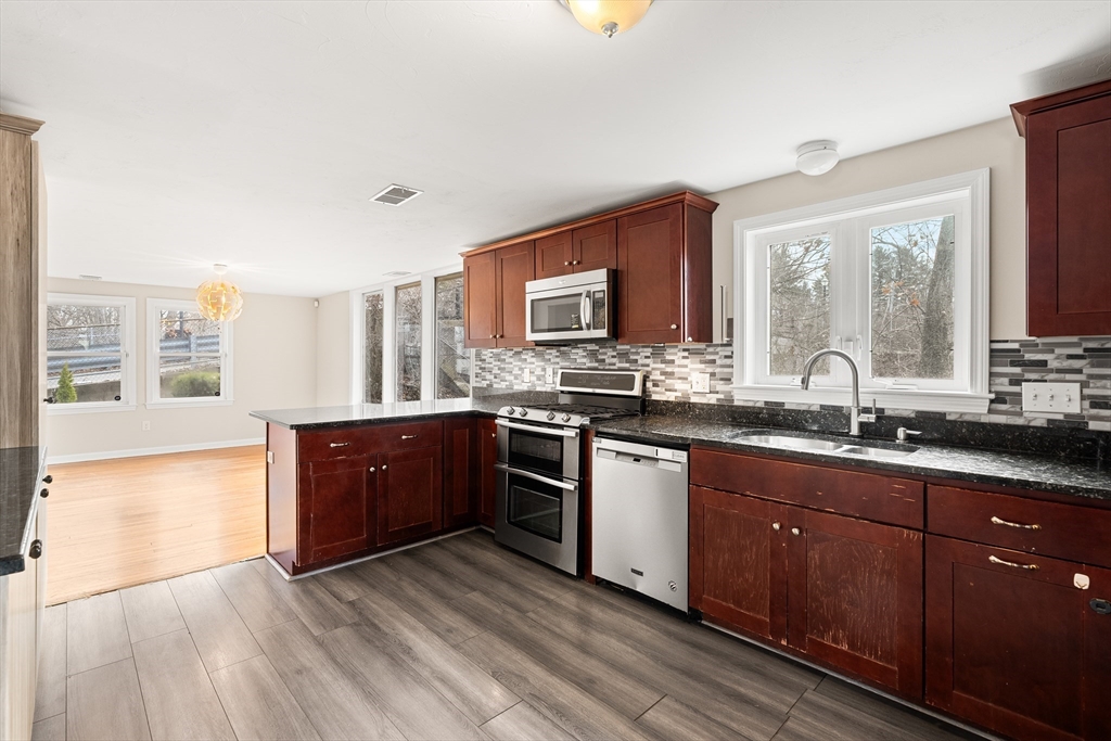 Located in the desirable Idlewell neighborhood and Academy school district, this home blends modern comfort with true functionality. Renovated in 2011, featuring an eat-in kitchen with stainless steel appliances, marble countertops, and plenty of storage. The first floor offers a bright and spacious living room, with its gas fireplace and slider to the deck, overlooking a large backyard—perfect for relaxing or entertaining. Additionally the main level also features newer flooring, a full bath, laundry room, and two sizable bedrooms with ample closets. Upstairs you will find two more bedrooms with updated flooring (SPC vinyl flooring-2020) and another full bath. The finished basement adds flexible space for an office, playroom, or entertaining. Central AC, detached one car garage - located just 1 mile from the commuter rail and Weymouth Landing, offering easy access to shopping, dining, and commuting options! *OFFERS DUE MONDAY 4/6 at NOON*