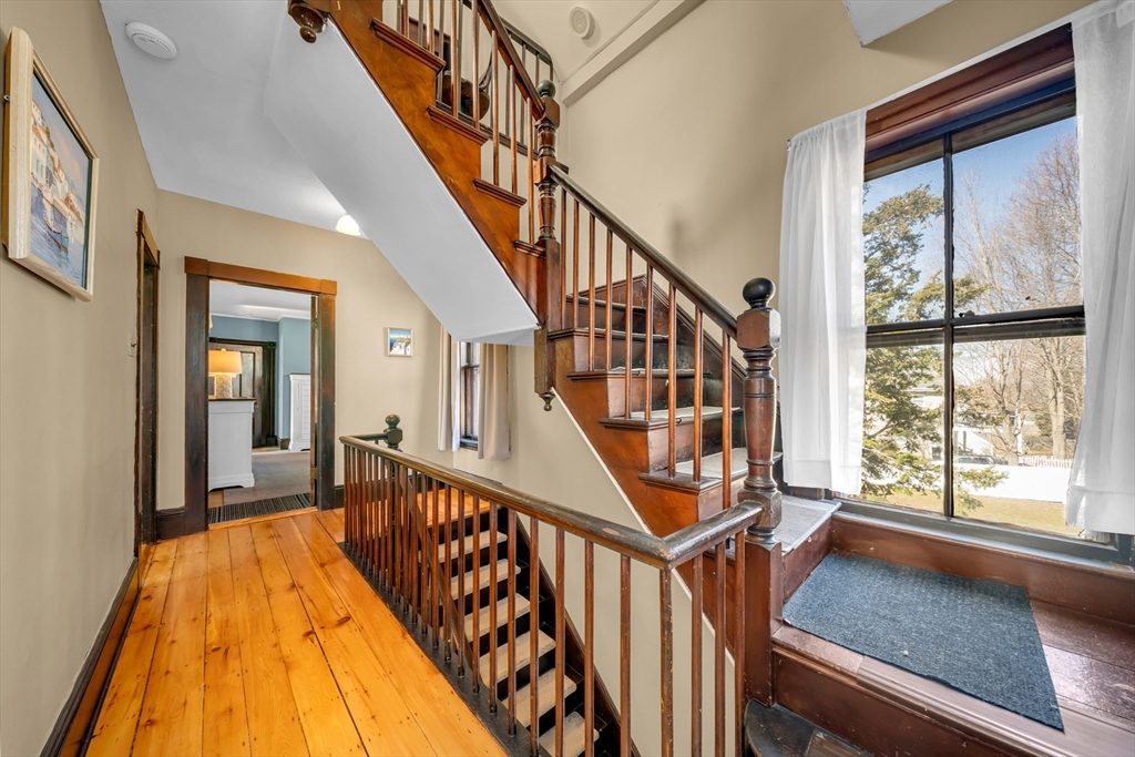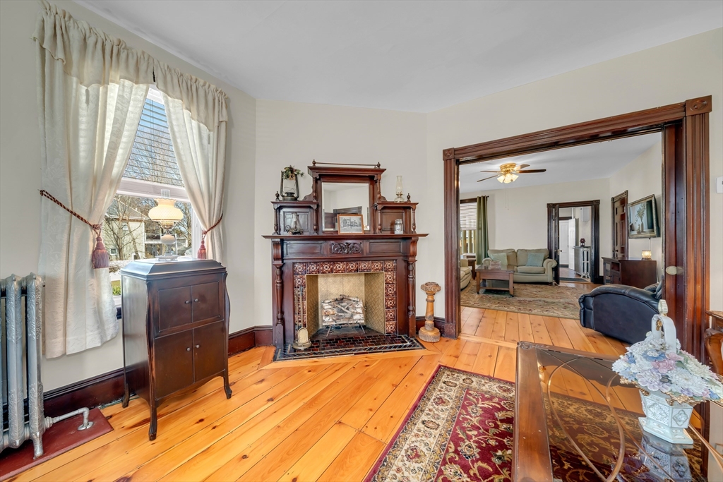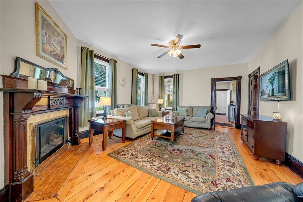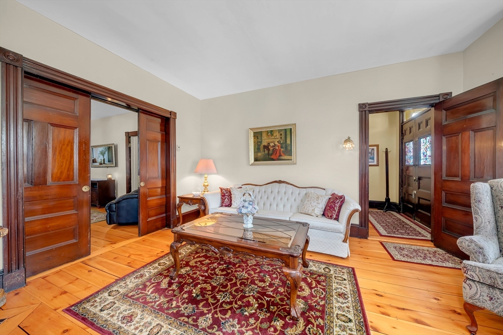 Glorious & pristine 16 room, 6 bedroom antique victorian located in the wonderful town of Ipswich. You will be amazed at the remarkable & outstanding condition of this 1887 home, which has been lovingly cared for & maintained by the same family for 4 generations. You are welcomed to the formal front foyer, with double entry doors & grand stairway, open to a beautiful front parlor. Soaring ceilings grace the 1st floor living space with expansive rooms, pocket doors, original trim, two unique kiddie corner mirrored fireplaces, gleaming wood floors, box & bay windows, & many other craftsman architectural features. The 1st floor encompasses the kitchen, pantry, mudroom, 3/4 bath, dining room, sunroom, parlor, foyer, & family room. The 2nd floor features 3 large bedrooms, office, full bath, & an additional kitchen for flex/ separate living space. The 3rd floor has a den, with 3 additional bedrooms. This home boasts an oversized double lot for further development pot., & has 4 garage spaces.