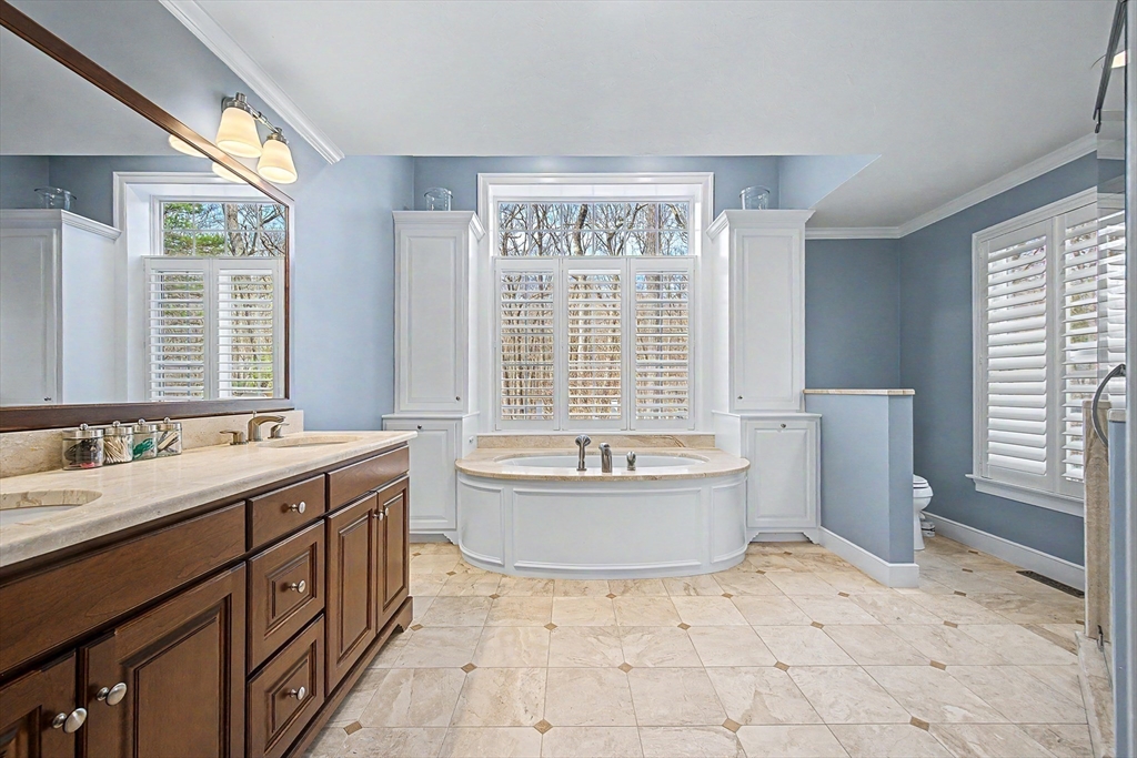 This luxurious contemporary colonial in a premier Hopkinton cul-de-sac offers unmatched sophistication inside and out. The interior is defined by a 2023 designer kitchen featuring Cambria Quartz and Bosch appliances, complemented by new hardwood floors, plantation shutters, and fresh paint. With 4/5 bedrooms and 5 baths, the layout provides ultimate flexibility, including dual primary suite options and a finished basement.The luxury continues outdoors with a 2023 custom living space boasting a bluestone patio, fire pit, and stone columns. Relax in the cathedral-ceiling screened porch or on three private decks overlooking the expansive, professionally landscaped yard with pool potential. Modern essentials include a new HVAC system, a new driveway, and a 3-car garage with high-end epoxy flooring. Showings begin at the open house Thursday April 2nd from 5-7 pm.