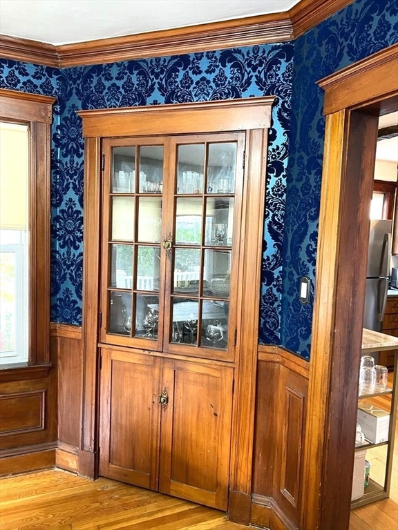 Charming single-family Colonial in the desirable BC neighborhood, steps from Rogers Park, featuring preserved period details like a stunning staircase, crown moldings, window and door trims, and dining room wainscoting. This four-bedroom, two-bath home offers a foyer, living room with a non-usable fireplace, dining room, and hardwood-floored kitchen on the first floor. Upstairs are three spacious bedrooms plus an extra room. Central air and a basement washer/dryer provide convenience. Small garage fits a Honda Civic. Outdoors, enjoy a craftsman-style porch, rear deck, and yard. Prime location near Comm Ave, Cleveland Circle, Oak Square, Brighton Center, the MA Pike, and public transit. (Photos are from before tenants)