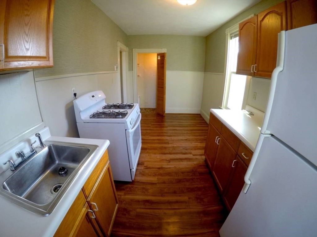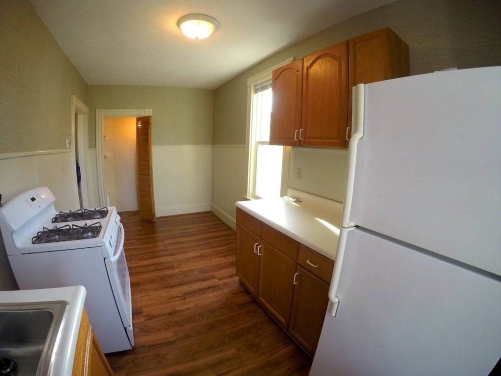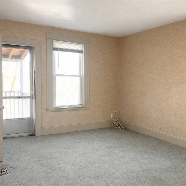 Heat and hot water included. Freshly painted second-floor apartment in a prime Roslindale location, just 0.2 miles to Roslindale Village Commuter Rail, shops, and dining. Bright, sun-filled layout with a spacious living room, large coat closet, and functional kitchen with wood cabinetry, white appliances, and pantry. Primary bedroom offers balcony access; second bedroom features great natural light and ample storage—ideal for a bedroom or home office. Updated bath with standing shower, granite vanity, and built-in storage. Additional perks include free basement storage and washer/dryer hookups. Carpet newly installed. Convenient access to public transportation, including quick routes to Forest Hills.