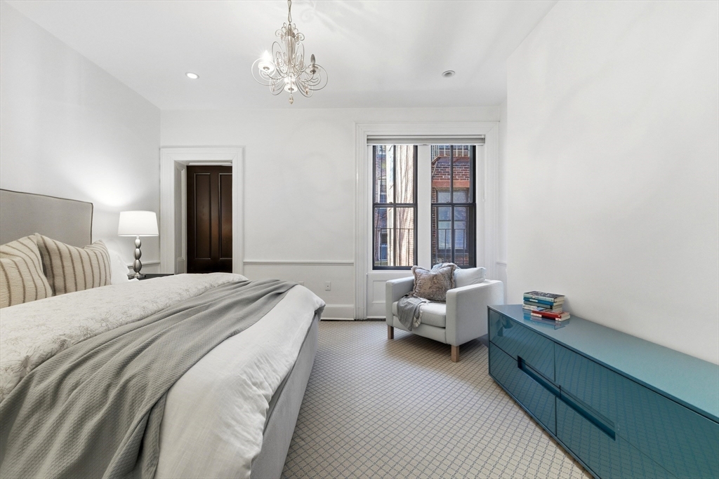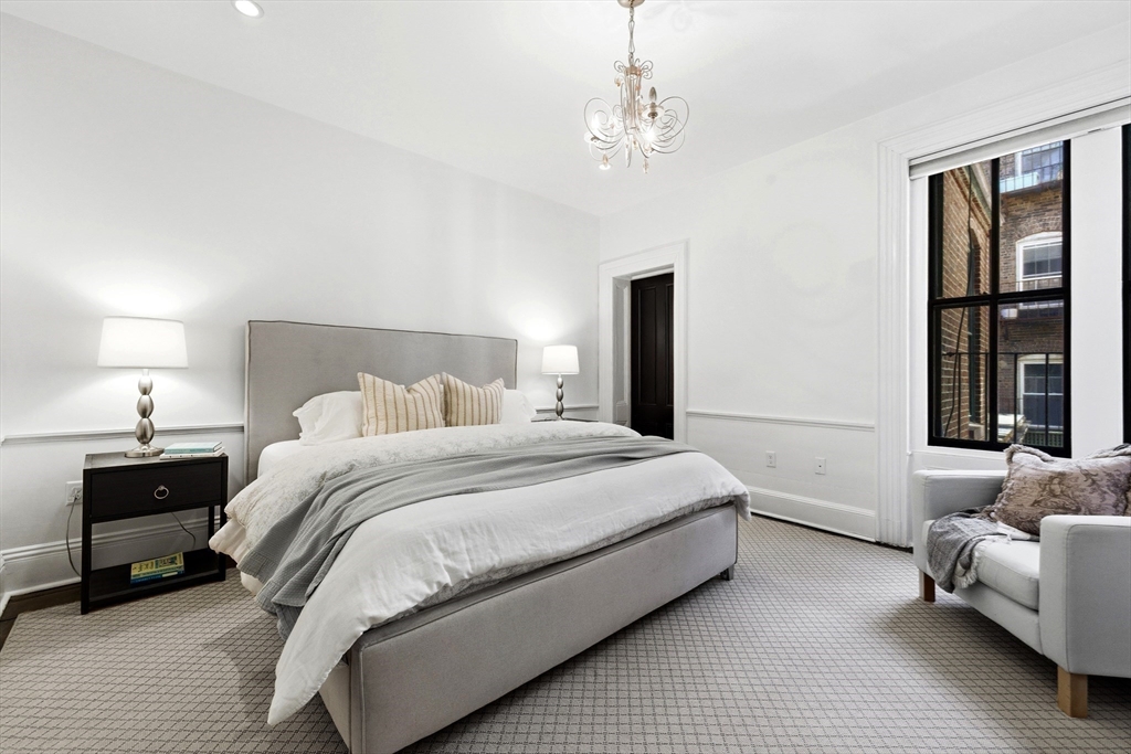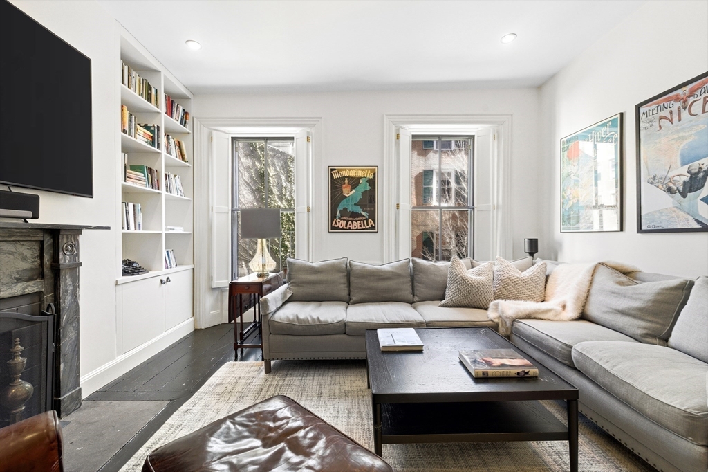 22 Joy St is a beautifully maintained single-family townhouse offering an exceptional opportunity for those drawn to the architectural character and lifestyle that define Beacon Hill, paired w/ modern comfort. The entry level immediately showcases the home’s timeless charm, featuring exposed beams, a spiral staircase, hardwood floors, and oversized windows that fill the living space with natural light. The kitchen is well-appointed with marble countertops + direct access to a private courtyard patio. Upper levels offer exceptional flexibility, including a comfortable library/ TV room with a wood-burning fireplace and custom built-ins, along with three spacious bedrooms and an additional private outdoor deck. The top-floor primary suite provides a sense of scale rarely found in Beacon Hill, complete with vaulted ceilings and a spa-like bath featuring dual vanities and a clawfoot soaking tub. A finished lower level adds valuable bonus space and ample storage.
