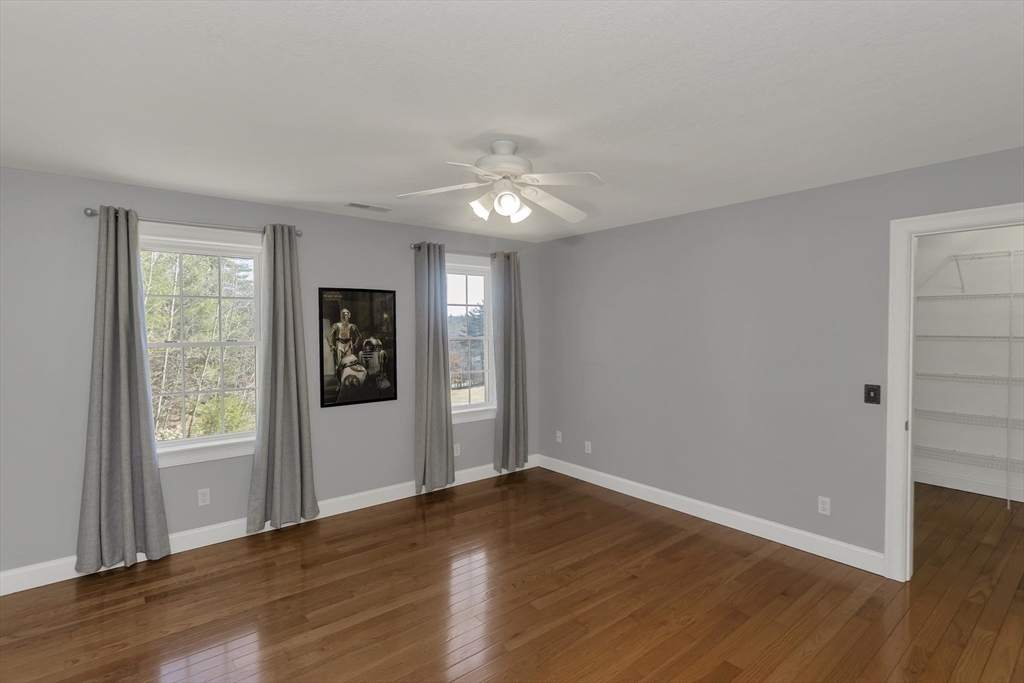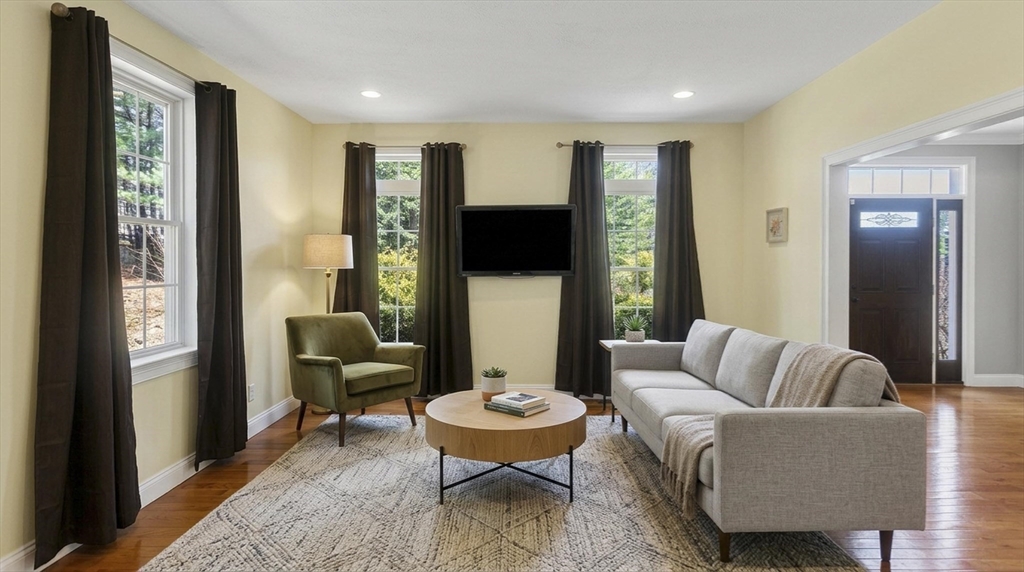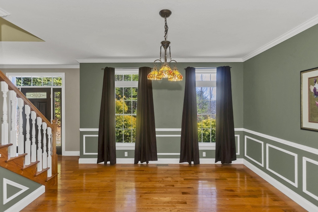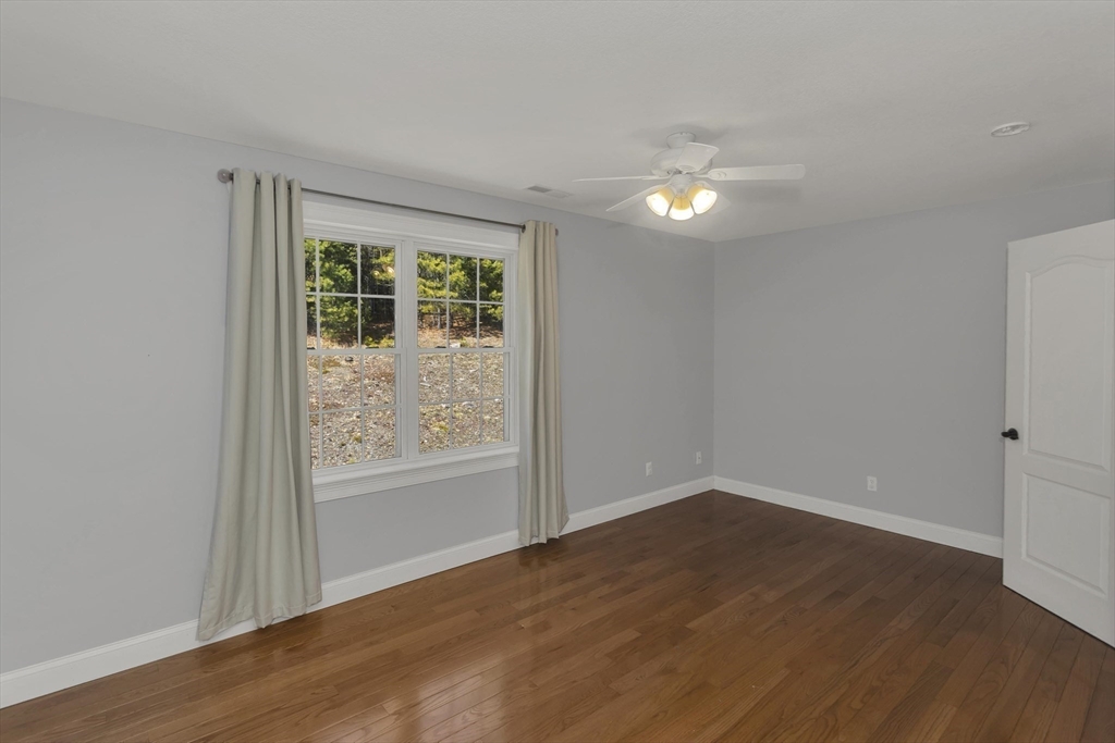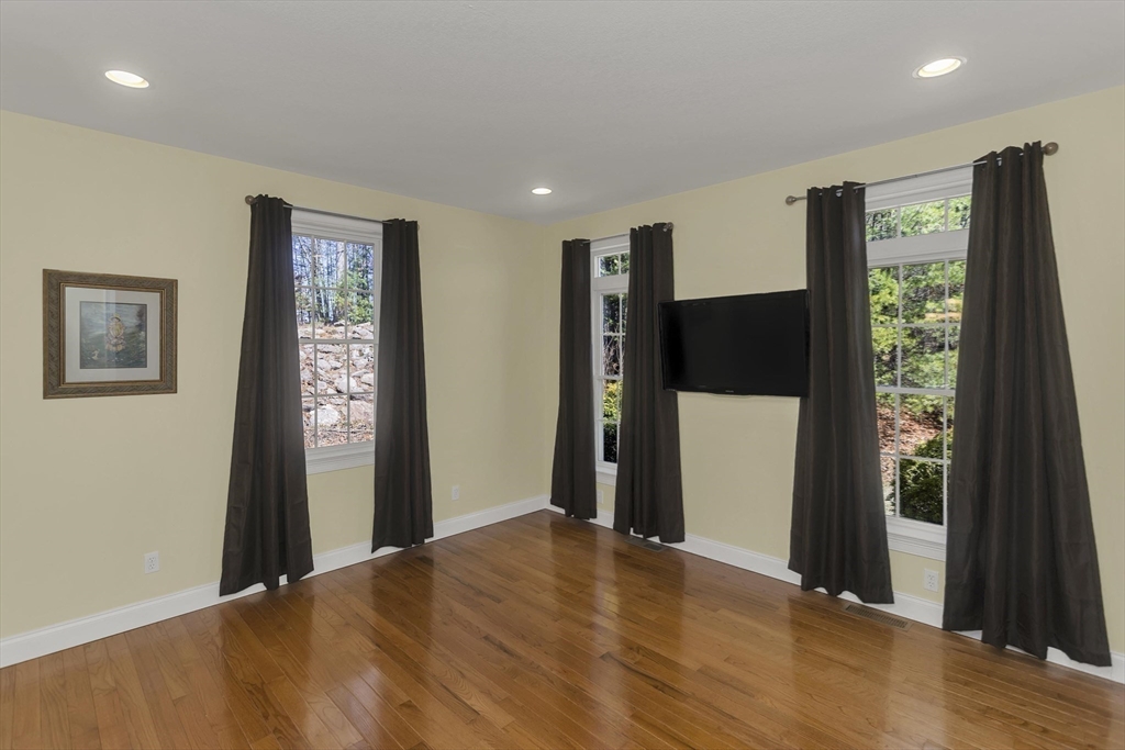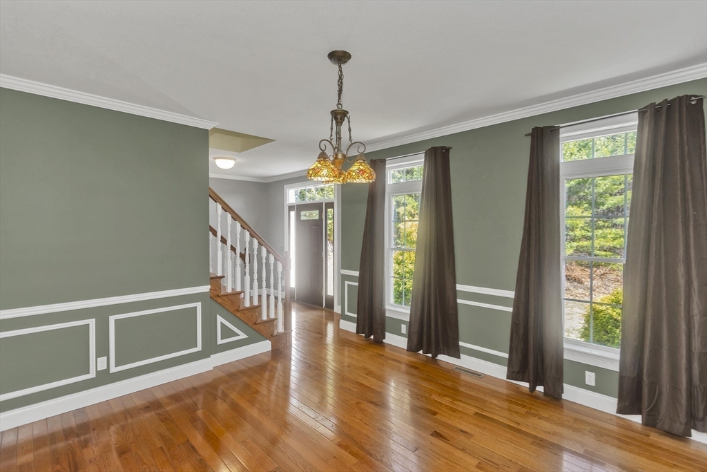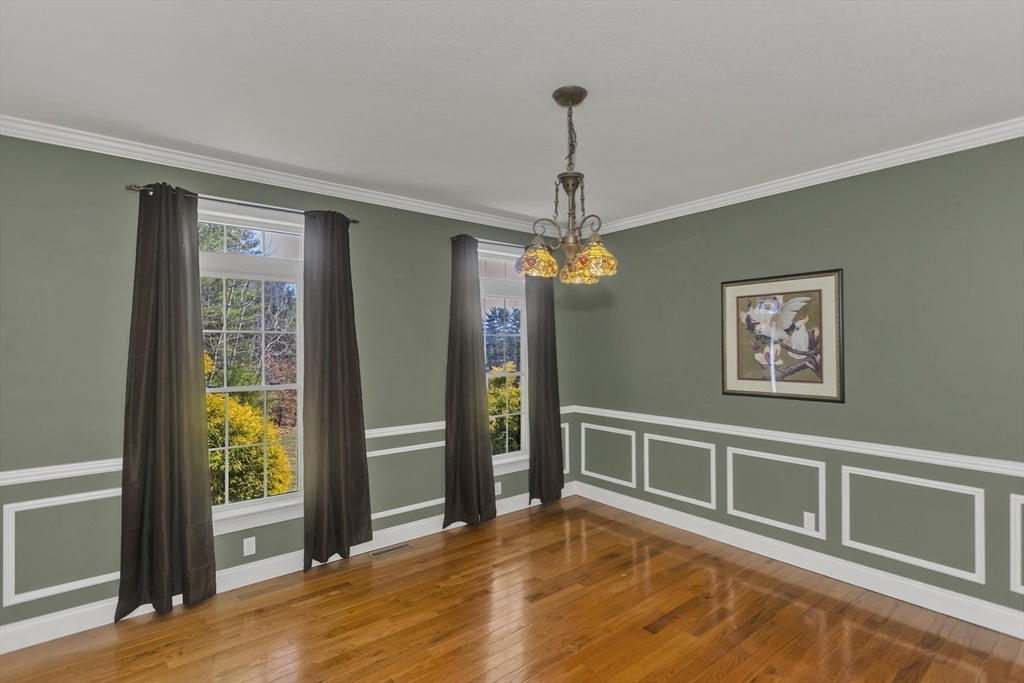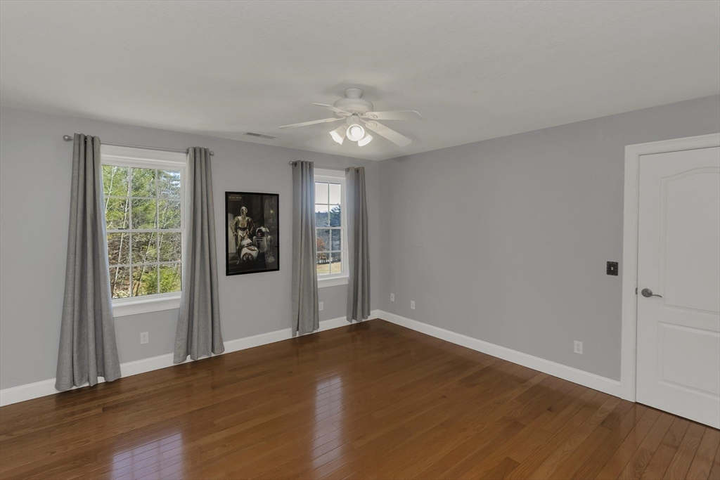 This well-maintained single-family home offers an exceptional combination of space, comfort, and privacy, featuring a desirable floor plan with over 3,100 sq ft of living space. The open-concept layout includes a large eat-in kitchen and seperate dining area, perfect for everyday living and entertaining. All rooms are generously sized, including four spacious bedrooms—most with walk-in closets. The primary suite features a private bath with double vanity sinks. Hardwood flooring runs throughout the home, adding warmth and continuity. Pride of ownership is evident in the home’s clean, meticulous condition. Additional features include central vacuum and ample storage. Set on a private 3-acre lot, this property offers a peaceful retreat while remaining conveniently located near Hadley, Northampton, and Amherst, providing easy access to shopping, dining, and local amenities.