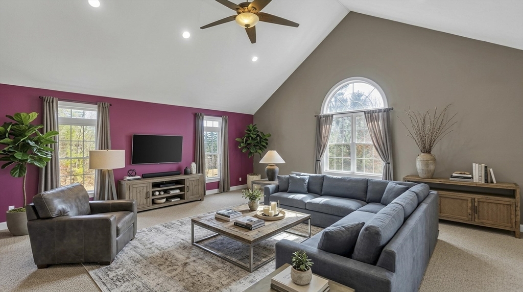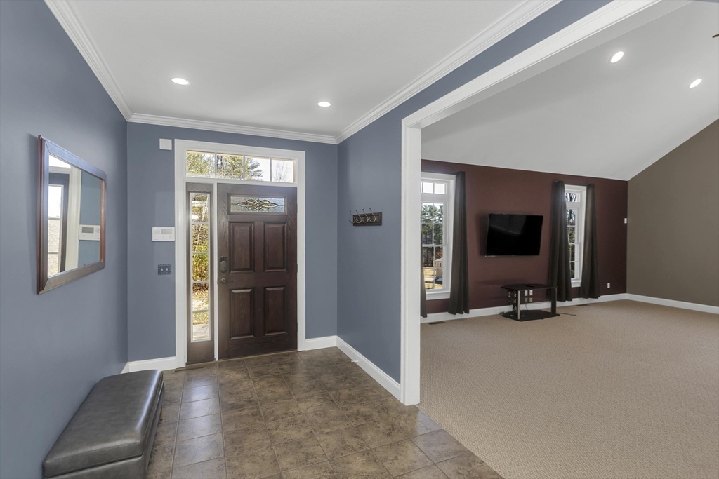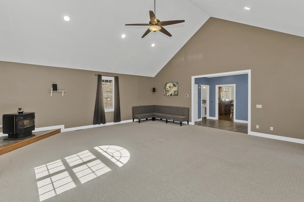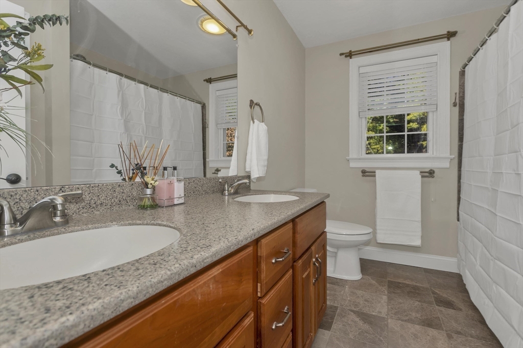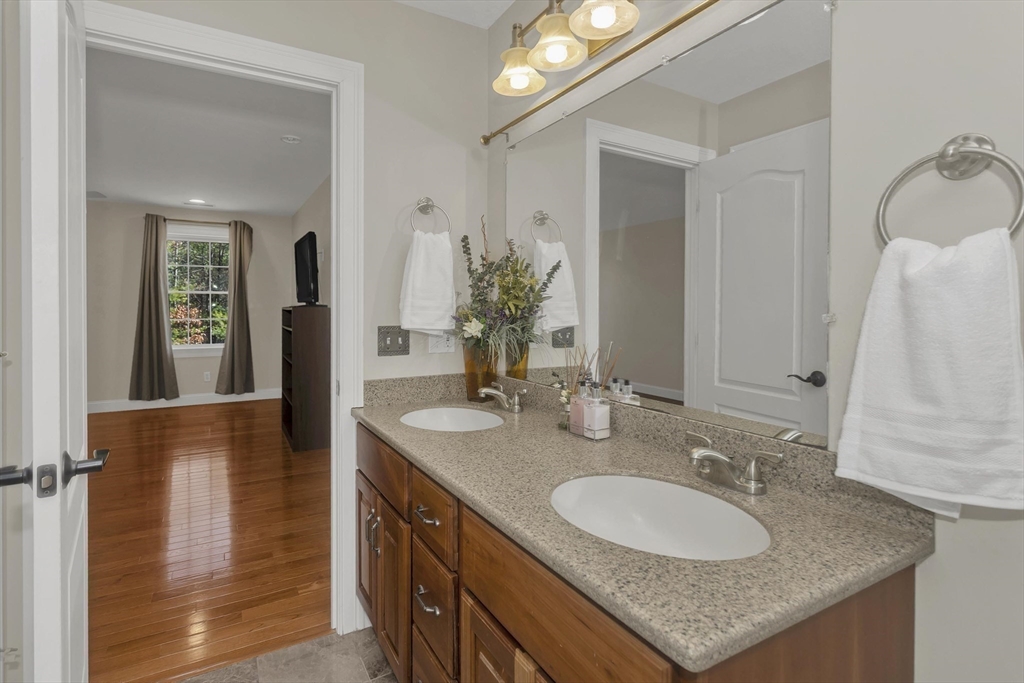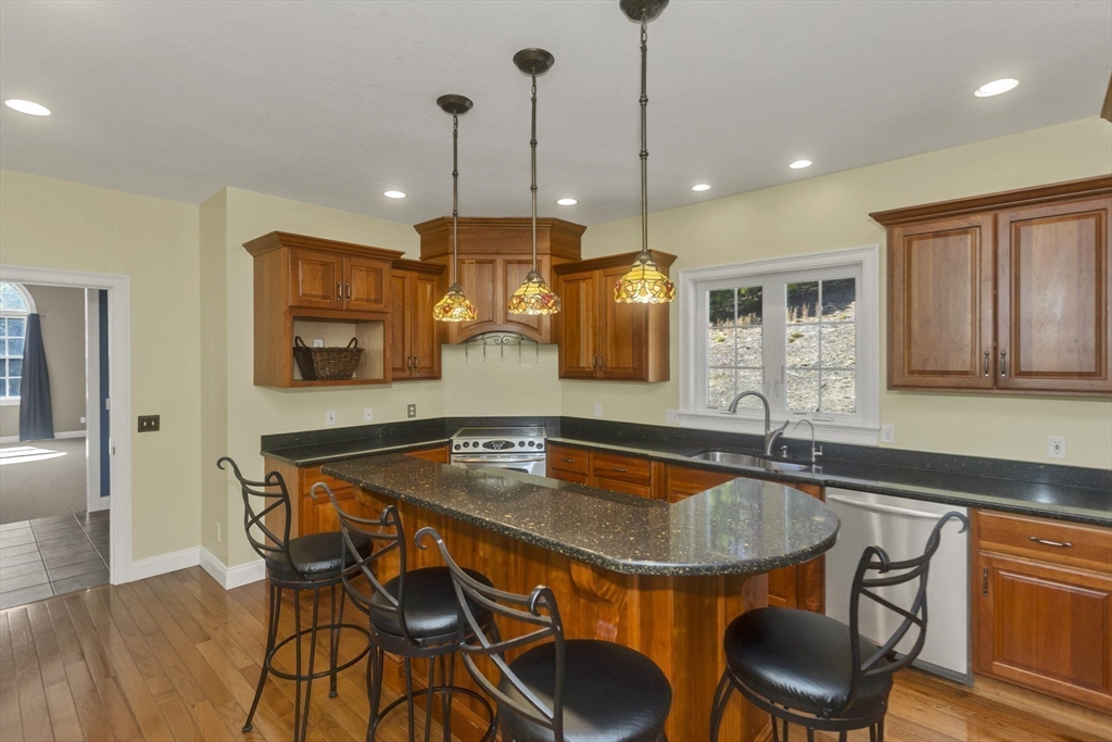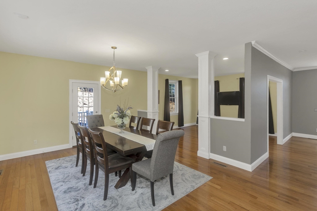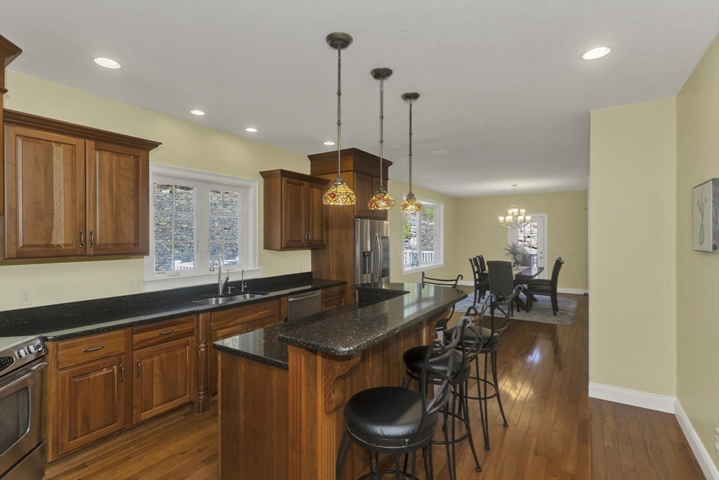 This well-maintained single-family home offers an exceptional combination of space, comfort, and privacy, featuring a desirable floor plan with over 3,100 sq ft of living space. The open-concept layout includes a large eat-in kitchen and seperate dining area, perfect for everyday living and entertaining. All rooms are generously sized, including four spacious bedrooms—most with walk-in closets. The primary suite features a private bath with double vanity sinks. Hardwood flooring runs throughout the home, adding warmth and continuity. Pride of ownership is evident in the home’s clean, meticulous condition. Additional features include central vacuum and ample storage. Set on a private 3-acre lot, this property offers a peaceful retreat while remaining conveniently located near Hadley, Northampton, and Amherst, providing easy access to shopping, dining, and local amenities.