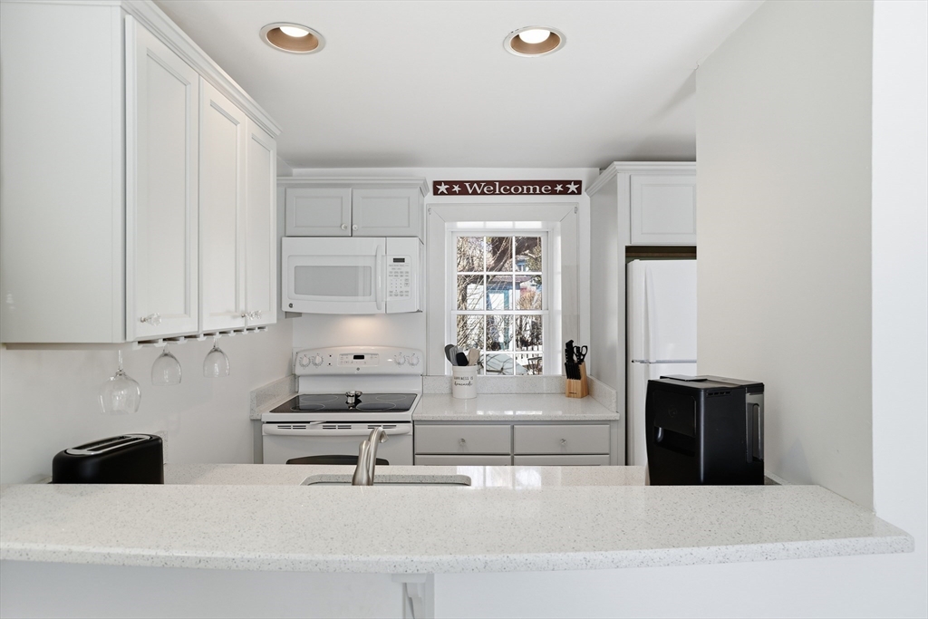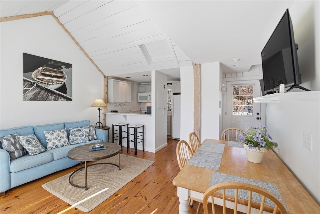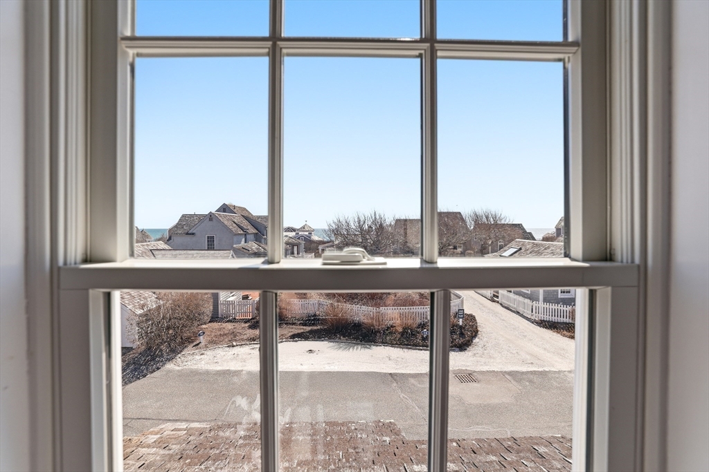 This Nantucket Style Seaside cottage-style townhome is ideally positioned in an elevated setting overlooking Maushop Village, with ocean views and breezes.Offering aa relaxed coastal lifestyle. Enjoy just steps to your private, deeded beach, with the vibrant Popponesset Marketplace nearby for dining, shopping, and entertainment.The home features picturesque ocean views including the second-floor bedroom, complete with a cathedral ceiling, ceiling fan, and private en-suite bath. The first floor offers a comfortable guest bedroom, full bath, and an open-concept layout with a kitchen bar that flows seamlessly into the living and dining areas, along with a convenient laundry closet. Additional highlights include a walk-in closet for ample storage, an outdoor storage shed, and two spacious, fenced brick patios in front with ocean views and spacious back--perfect for relaxing or entertaining.Residents enjoy access to joining The private Club at New Seabury
