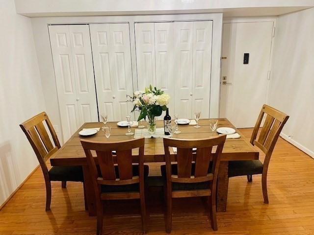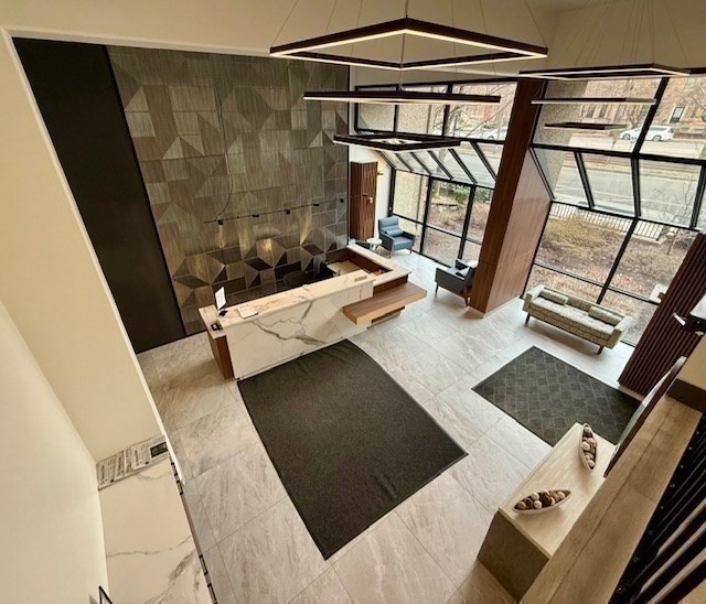 Perched high above the bustle of city life, this stunning one-bedroom condo with genuine hardwood floors has undergone a glamorous high-end renovation. Bathroom features "His & Her" sinks, granite counters, walnut vanities w/ generous storage, mother-of-pearl tiles & recessed lighting. Open-concept Living/Dining area creates a welcome space for lively entertaining. Enjoy elegant, carefree living at Brookline's most desirable full-amenity complex. Included: 24 Hr Concierge, 4-Season heated Pool w/ landscaped courtyard, Garage Parking, Guest Parking, Storage, Gym, Clubroom, Library & Roof Deck w/ Panoramic views! *Brand new Laundry rooms on every floor. *Just completed; a stylish renovation to ALL common areas; hallways, elevator banks, and both Lobby levels. *Wonderful pied--a-terre for the urban professional. *Effortless Living amidst the renowned Washington Square dining scene. *C-line train just outside your front door with EZ access to Longwood Med & downtown Boston.