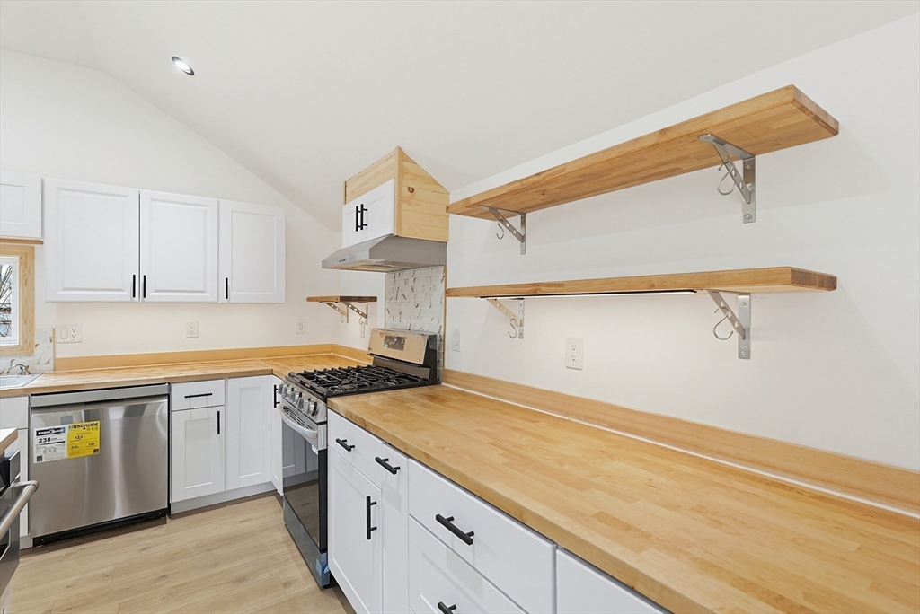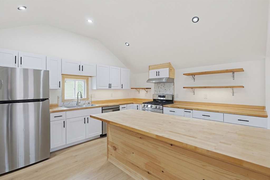 Welcome to this charming and updated Cape-style home in Attleboro! This 3-bedroom, 1.5-bath property offers a bright, open feel with vaulted ceilings in the living room and kitchen, creating a spacious and inviting atmosphere. The remodeled kitchen features stainless steel appliances, center island with butcher block countertops, perfect for both everyday living and entertaining. The main level includes a convenient first-floor primary bedroom with a walk-in closet, along with first-floor laundry and updated baths. Additional bedrooms provide flexibility for guests, home office, or extended living space. Enjoy year-round comfort with central air and efficient gas heating. Outside, you'll find a fenced yard and a wood deck, ideal for relaxing or hosting gatherings. Conveniently located minutes from Downtown Attleboro, commuter rail, and Capron Park. This home combines comfort, convenience, and value.