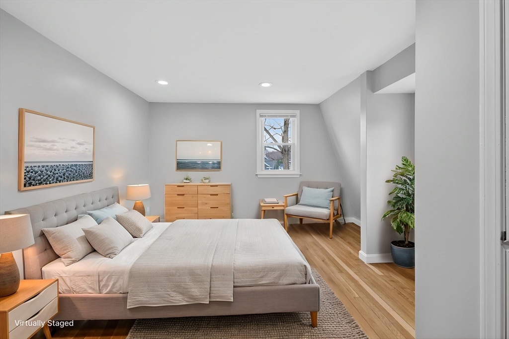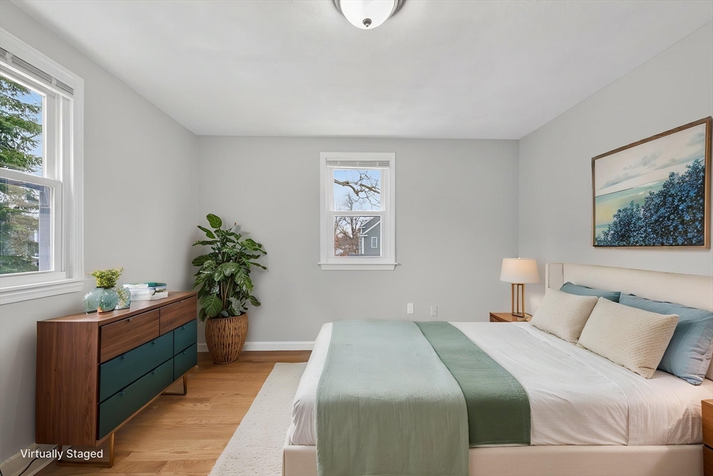 Beautifully renovated single-family offering 4 bedrooms, 2 full bathrooms, and over 2,000 sq.ft. of updated living space. This split-level home features hardwood floors, fresh paint, and brand new vinyl windows that bring in great natural light. The kitchen offers quartz countertops, refreshed cabinetry, and stainless steel appliances, flowing into the living and formal dining areas. The main level includes a bedroom and full bath, while upstairs features three well-sized bedrooms and a second full bath. Both bathrooms have been updated with modern finishes, offering added comfort and peace of mind. The finished, heated walkout lower level with LVP flooring provides flexible bonus space, with laundry hook ups and direct access to a flat yard. Conveniently located near Route 3, I-95/128, and I-495, and within walking distance to local schools, parks, and everyday amenities. This home offers a fantastic balance of flexibility and modern comfort. Open Houses on 4/4 and 4/5!