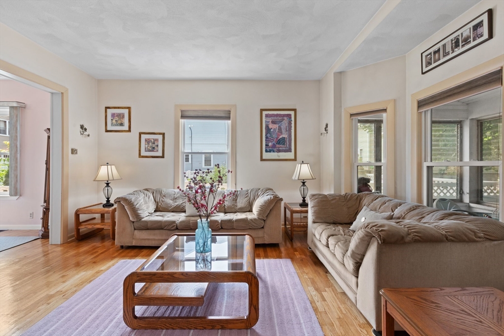Charming 3-bed, 1.5-bath Colonial located in desirable Wellington neighborhood. Perfectly tucked away yet ideal for commuters w/ access to Rts 93 & 16, Orange Line, MBTA, Assembly Row, & Harris Park. Inside, you’ll find hardwood flooring, impressive ceiling height, gas heat, & loads of light. 1st level features a delightful screened porch, perfect for morning coffee or al fresco dining, along with a spacious LR, formal DR, and kitchen w/ generous pantry & washer/dryer for added convenience. 2nd level offers 3 comfortable beds & full bath, plus access to a walk-up attic-ideal for storage or potential expansion. Need more space? The partially finished basement includes a plumbed 1/2 bath & additional finished space perfect family room, home office, or den. Home is accessed via an easement over a neighboring drive, leading to a private patio and parking. Don't miss out on the low maintenance of a condo and privacy of a single family home. Showings begin 4/2 at commuter open house 4-6pm