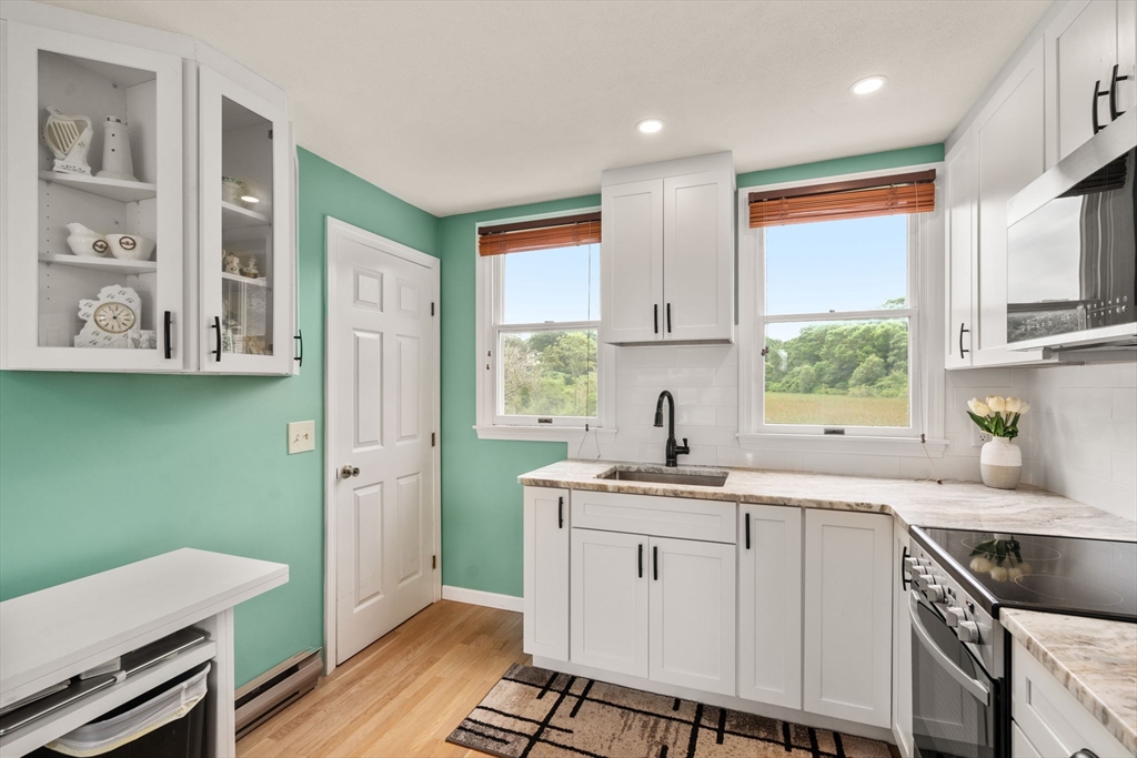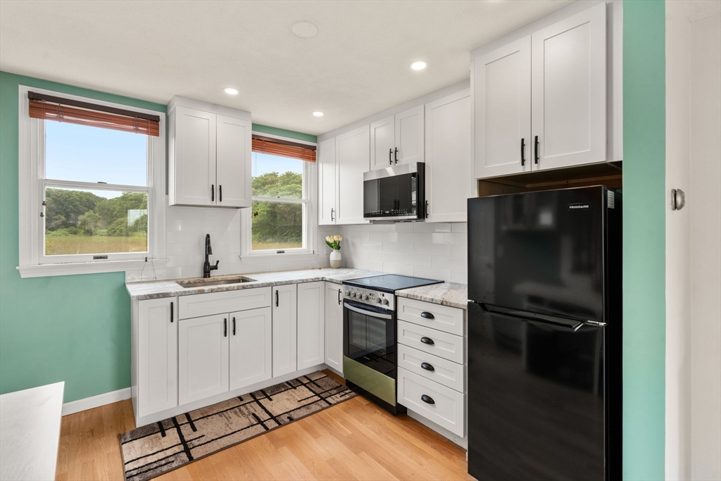 Desirable corner-unit townhome with full ocean views, abundant natural light, and a refreshing ocean breeze. Remodeled open floor plan on main level offers seamless living and entertaining space with updated kitchen and hardwood floors. Wake up to scenic water views from the second floor primary bedroom, featuring double closets and newly remodeled bathroom. Lower level includes a second bedroom with full bath, perfect for guests or flexible use. Walk out back on your private enclosed patio to beautiful marsh views and excellent bird watching. Just steps from Folly Cove Landing and Halibut Point State Park with easy access to coastal trails and outdoor recreation. Move-in ready with strong coastal appeal, ideal for year-round living or a vacation retreat. Enjoy Rockport's treasure trove of beaches, restaurants, galleries, shopping, and the iconic Shalin Liu Performance Center. Pet friendly! Here, you'll find you new oceanfront home oasis!