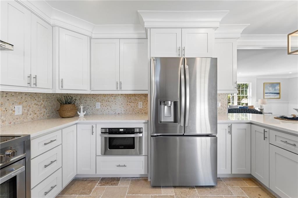 Turnkey coastal living just minutes from Watch Hill, offering a rare opportunity for the space, privacy, and ease that typical beach homes can’t. This fully renovated 3-bedroom, 3-bath raised ranch with a 2-car garage is set back on a landscaped half-acre lot with a circular driveway, stone-lined approach, and private backyard. The home features a stunning new kitchen with quartz countertops and high-end appliances, plus new roof, siding, heating, plumbing, and electrical for peace of mind. Bright main-level living spaces with hardwood floors and custom millwork flow seamlessly, while the finished lower level includes a fully renovated bath and flexible space for guests, office, or recreation. Enjoy a composite deck and private primary deck. Minutes to Misquamicut Beach, Watch Hill, marinas, golf, and dining. Ideal year-round or coastal retreat.