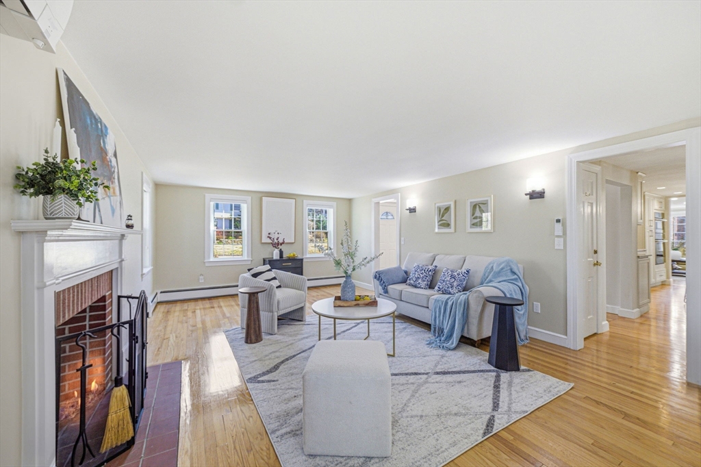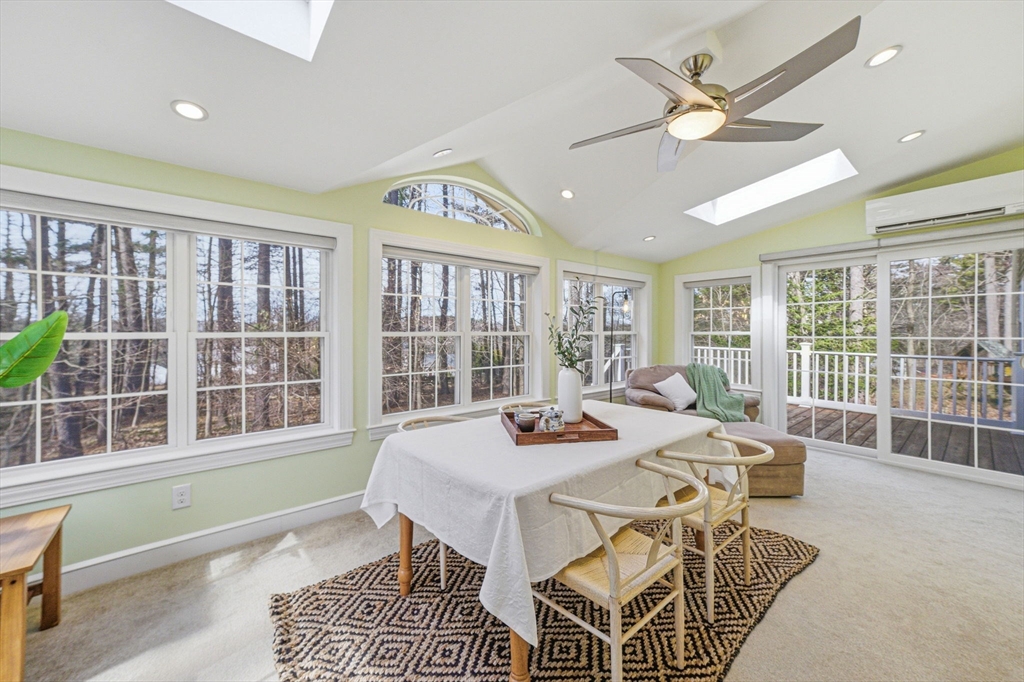 Welcome to this newly updated Colonial in the highly sought-after Minuteman Ridge neighborhood, enjoy neighborhood pool and a location within walking distance to AB schools, West Acton Village, shops, trails. The open layout showcases a remodeled kitchen with induction cooktop, quartz countertop, large center island, high-end stainless-steel appliances and beverage station with wine cooler, a formal dining room, and a front to back family room with picture window and fireplace with woodstove insert, perfect for everyday living and entertaining. A front to back living room with second fireplace and a four-season sunroom complete the main level. Upstairs offers four bedrooms including a bright primary suite, updated baths, and a cedar closet. Finished lower level with built-ins offers space for a playroom, office, or gym. Other features include double-pane windows, Central A/C, upgraded 200amp electrical panel with generator interlock, landscaped lot with a deck for outdoor enjoyment.