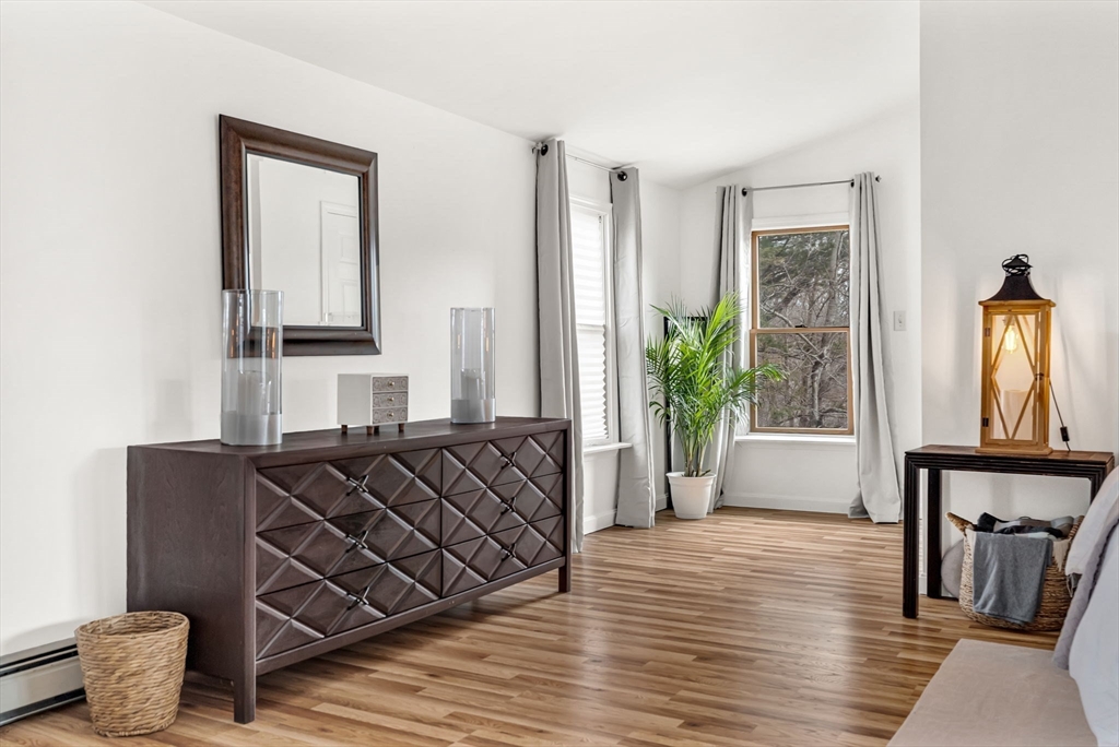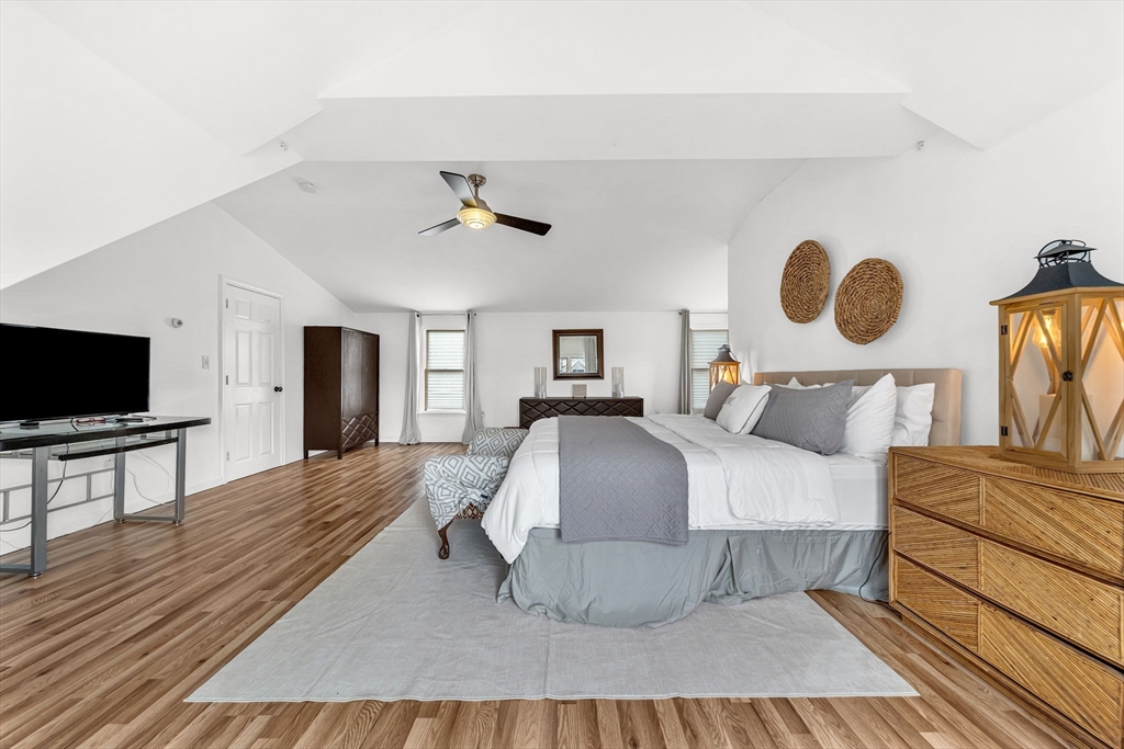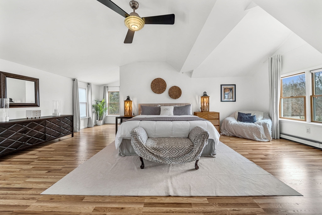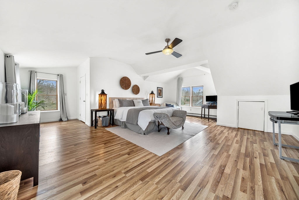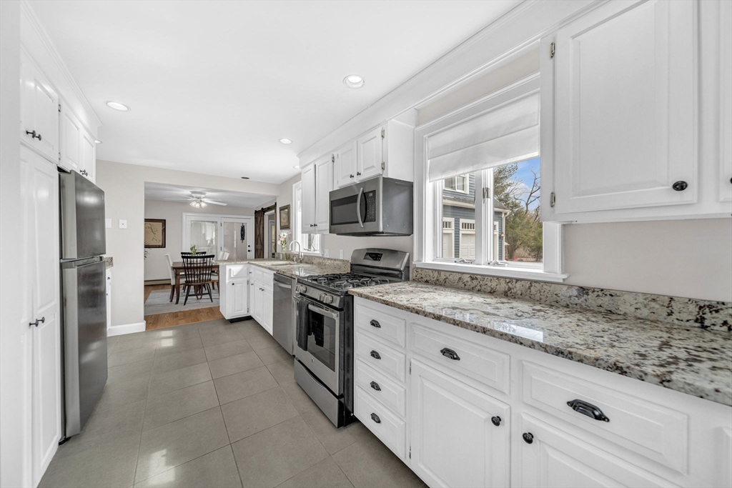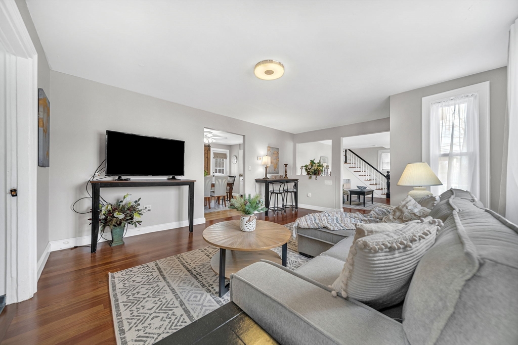 Discover this charming colonial architectural style home in the heart of Weymouth, offering a perfect blend of exceptional space and modern convenience. This home features 4 generous bedrooms and 2 full baths. Newly installed hardwood flooring on the 2nd floor and freshly painted throughout the entire house, creating a warm and welcoming ambiance. The kitchen boasts durable granite countertops, a gas range, a pantry, and recessed lighting, making it ideal for both meal preparation and entertaining. The dining area offers easy access to a manicured backyard—a private oasis for relaxation or play, complete with a 10x16 storage shed. A massive attached 2-car garage provides abundant storage or workshop space. Positioned privately above the garage sits the luxurious primary suite retreat, featuring a large walk-in closet and a full bath. For commuters, this location is unmatched. Situated just minutes away from the East Weymouth Commuter Rail station, South Shore Hospital and golf course.