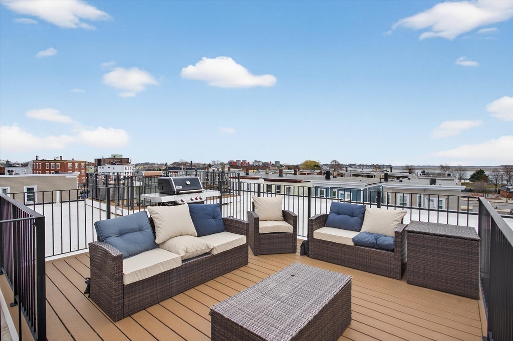 Stunning, light-filled penthouse at 946 Saratoga Street, "The Tess". An exceptional East Boston find, this beautifully appointed home features an open-concept living area with an abundance of windows that frame harbor vistas and the Boston skyline, creating a serene backdrop for everyday living and entertaining. Modern finishes and thoughtful details throughout create a bright, welcoming atmosphere. Step out to your private balcony, then ascend to your exclusive private roof deck - your outdoor retreat with panoramic water and city skyline views, perfect for entertaining or quiet sunsets. Convenience is elevated with an included covered parking space, in-unit laundry, plus easy access to waterfront parks, Constitution Beach, restaurants, and a quick commute into downtown Boston with the T right around the corner. A perfect blend of style, location, and views - exceptional East Boston living.