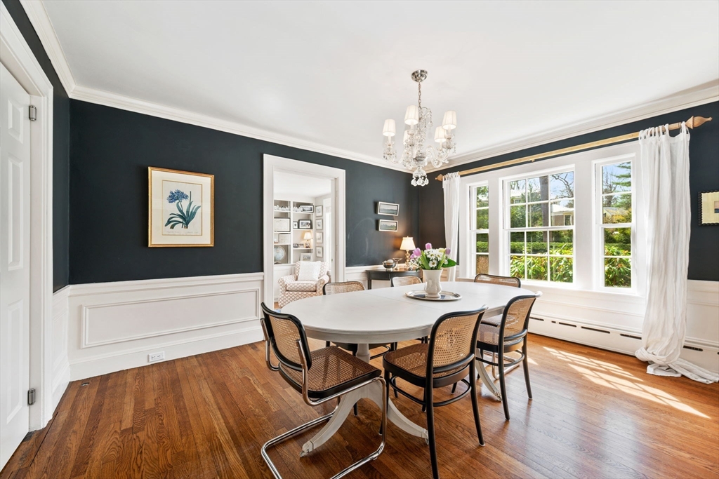 Enjoy phenomenal walkability with a 0.6-mile stroll to Wellesley High School, Brook Path and easy access to shops, dining, and commuter rail, all from this 5-bedroom, 4-bath home in the sought-after Country Club neighborhood. Blending timeless charm with modern comfort, wainscoting, arched doorway, and original moldings create a warm, inviting feel. The formal living room features a cozy wood-burning fireplace, while the impressive 20x18 family room offers a coffered ceiling, built-ins, and a wet bar with beverage refrigerator—perfect for entertaining! Thoughtfully updated--granite counter tops, Wolf gas stove, refrigerator (2022), washer/dryer (2022) and meticulously maintained, this home includes elegant living and dining spaces plus a sunken, sun-drenched corner office. Designed for today’s lifestyle with room to relax and recharge. Set on nearly a half-acre, the flat backyard is ideal for play or pets,complemented by a bluestone patio for outdoor dining. A truly move-in ready home.