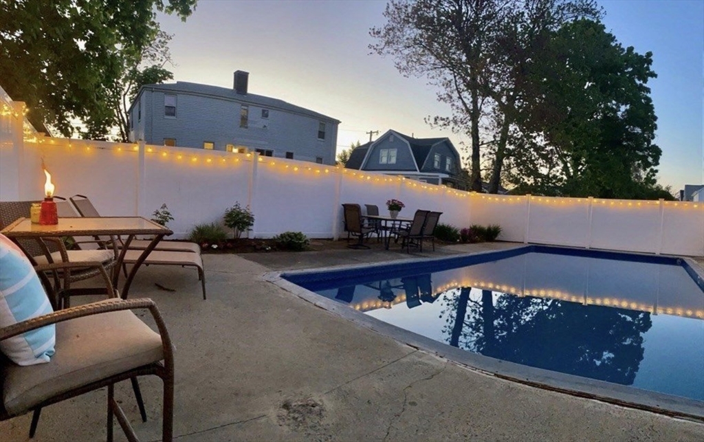 Enjoy being home in this renovated townhouse within a two family home with one assigned off-street parking space. Open floor plan accentuates the updated kitchen with granite countertops and stainless steel appliances including an eat in kitchen nook and counter bar that creates plenty of seating space. The sliders open to an outdoor oasis including a deck, cabana and in ground pool for you to enjoy wile staying or working from home. Hardwood floors, high ceilings, vinyl windows and central air complete the package of this amazing home. Incredible family oriented, safe neighborhood and location near shops, transportation and restaurants make this home desirable.