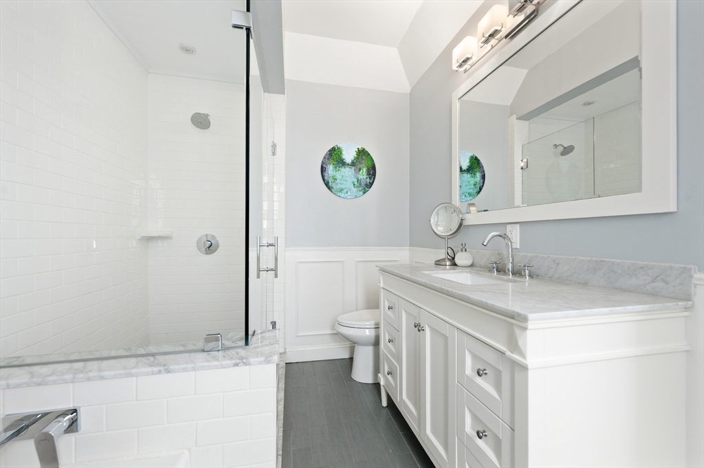 Filled with natural light, this home lives like a true single-family w/ its own private entrance & multiple levels of spacious living. The main level offers an open layout centered around an island with seating & stainless steel appliances. With plenty of room for both a full dining & a proper living room & just off the living space is a private patio. The 2nd floor features two generously sized bedrooms, a full bath & convenient laundry. The entire top level is the primary suite & is drenched in sunlight from multiple exposures; complete with a sitting area & full bath featuring a frameless glass shower, whirlpool tub, & marble vanity. The lower level provides a comfortable family room & half bath. Common storage, including space for bikes. HOA is fully owner-occupied. Just a 6-min stroll to the Stony Brook MBTA & 1 mile to Whole Foods & all that Centre Street has to offer including some of the best shops, bookstores & coffee spots. Parking space is fitted w/ EV charger! Do not miss!
