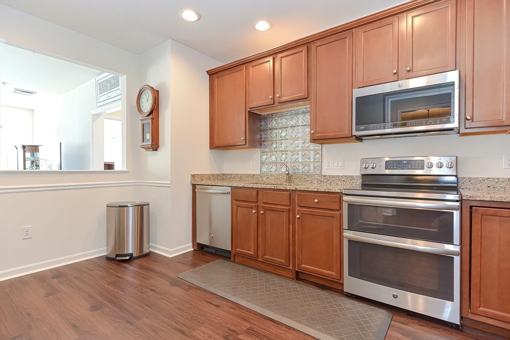 Rare opportunity in South Natick Hills. This freshly painted, well-maintained home offers 2 tandem garage spaces, elevator access, a playground, and walking trails. The open floor plan includes kitchen, dining, and living areas, plus two bedrooms and two full baths. The primary suite features a walk-in closet and ensuite with soaking tub and shower; the second bedroom has a bath just outside its door. Enjoy a balcony for sunset views, ample guest parking, and proximity to the Natick "T", Doug Pond, downtown Natick, and major routes. Filtered water system conveys with purchase.Condo fees include water and sewer.