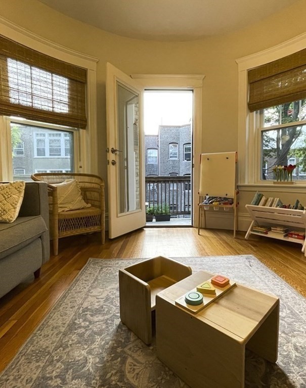 Bright, sunny, and inviting top-floor one-bedroom + den in a classic brownstone on a quiet, tree-lined street in the heart of Coolidge Corner.This spacious corner unit features high ceilings, hardwood floors, and abundant natural light throughout. The flexible layout includes a generous den that can easily function as a second bedroom or home office. The primary bedroom offers excellent light, a deep walk-in closet, and direct access to your own private treetop balcony.The eat-in kitchen is has inviting finishes finishes, a dishwasher, range hood, and ample counter space—ideal for everyday cooking and entertaining. The bathroom is tastefully updated and includes an in-unit Bosch washer and dryer. Recessed lighting throughout enhances the bright and airy feel of the home.Additional basement storage is included. Enjoy a Walk Score of 90+ with easy access to restaurants, cafes, shops, and the MBTA Green Line (B & C). Conveniently located near Boston University & Longwood