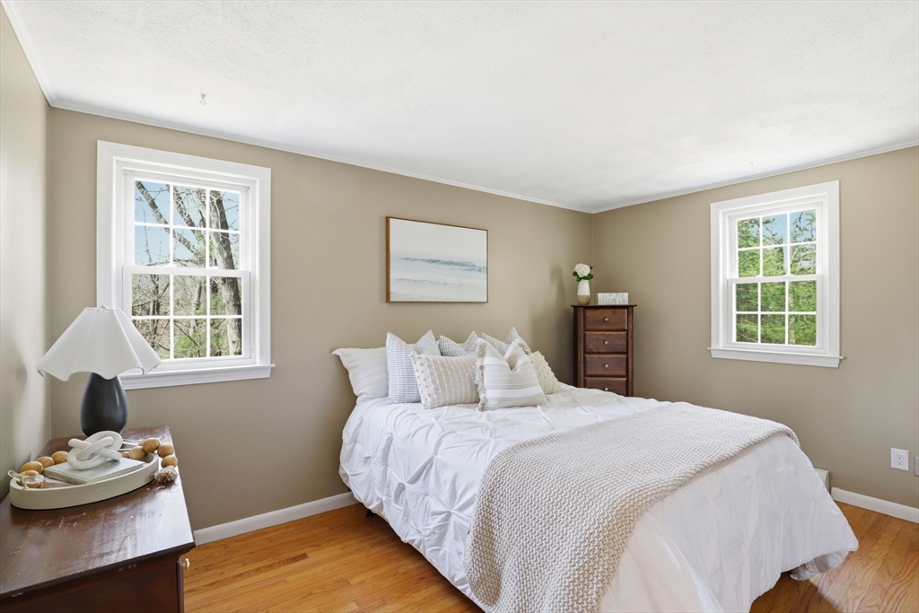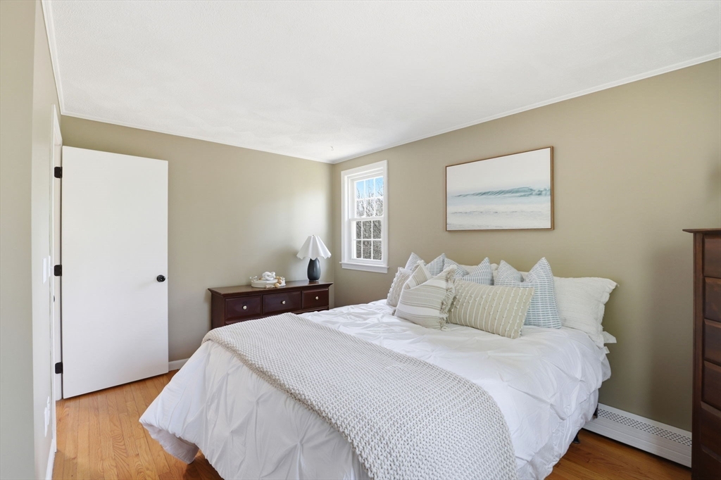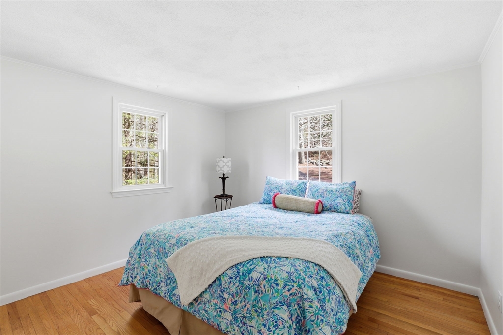Easy living awaits at this meticulously maintained Split-Level Ranch, nestled among 1.2 acres of private tree-lined land & all just under 2 miles from the beach! Inside, the sunlight pours through the upper level, featuring hardwood floors, a bright & airy eat in kitchen w/ SS appliances that overlooks the expansive backyard & a cozy living room w/fireplace. Three good-sized bedrooms & the full bath w/skylight complete the first floor. The brand new, partially finished & heated lower-level, offers a versatile living space, perhaps an office, 2nd living room, hobbyist area, imagine the possibilities! There's no shortage of storage space throughout the rest of the basement w/a walkout door to the backyard welcoming cozy gatherings, perfect for entertaining! Many updates include septic leaching feild & box, paint, fixtures, furnace, etc. Ideally located just minutes to Humarock, walking trails, shops, & restaraunts! This must-see, truly cherished home is ready for new memories to be made!