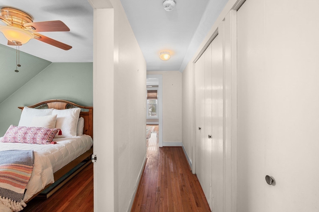 Spacious and charming condo ideally located near town, schools and across from Abbot Public Library, the bike path, with easy access to Seaside Park, Devereux Beach, and shops. Bright and inviting, this large 3-bed, 2-bath condo offers approx. 1,800 sq. ft. across 2 levels in a c.1920 two-family home. A welcoming private entry with coast closet and a beautiful staircase lead up to the unit. The main level features wood floors throughout, a living room with exposed beams and a wood-burning stove, dining room with closets and chair rail, dedicated home office space, sunny kitchen with gas stove and granite countertops, full bath, and in-unit laundry. A second staircase provides convenient access to the rear entrance and driveway. The top floor offers three bedrooms, a full bath, skylights for abundant natural light, and great closet space. Enjoy three raised garden beds—perfect for vegetables, herbs, or flowers, a small shed — and 2 off-street parking spots.