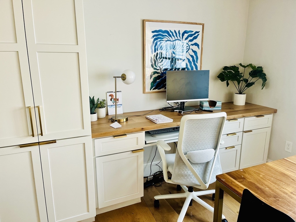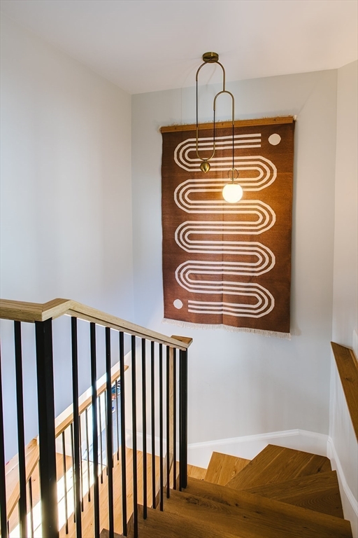 Enjoy the best Somerville has to offer in this fully renovated (2019) custom designed 4 bed/3 bath home with high-end finishes in Teele Square. Just .6 miles from everything Davis Square has to offer, but in a quiet neighborhood. The open-concept first floor centers around a designer kitchen with center island, induction stove, and coffee station, plus a dining area and built-in desk perfect for entertaining or working from home. The living room and mudroom open to a private back garden and two-car parking. A stylish bath and staircase complete the first floor. Upstairs, three bedrooms and two bathrooms include a primary en suite with double sinks, walk-in closet, cathedral ceilings, and vanity space. The lower level offers a family room, fourth bedroom, and laundry — ideal as a guest suite, office, or gym. New appliances, easy access to Davis Square, Cambridge, and Boston. Red Line .6 miles, Green Line 1 mile, walkable to shops, restaurants, cafes, and grocery stores.