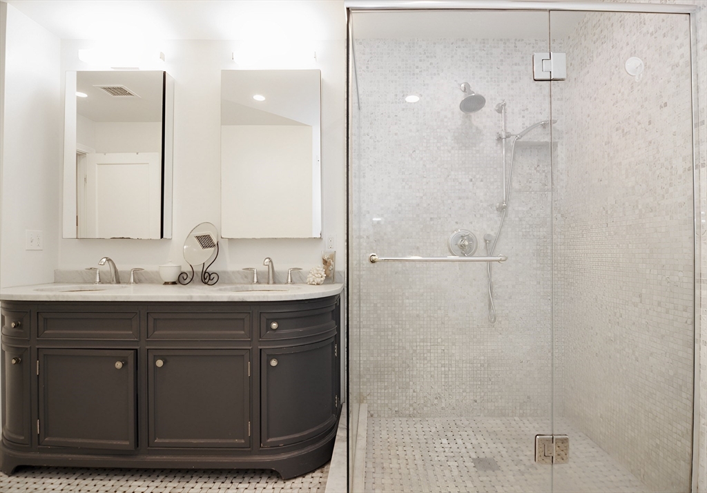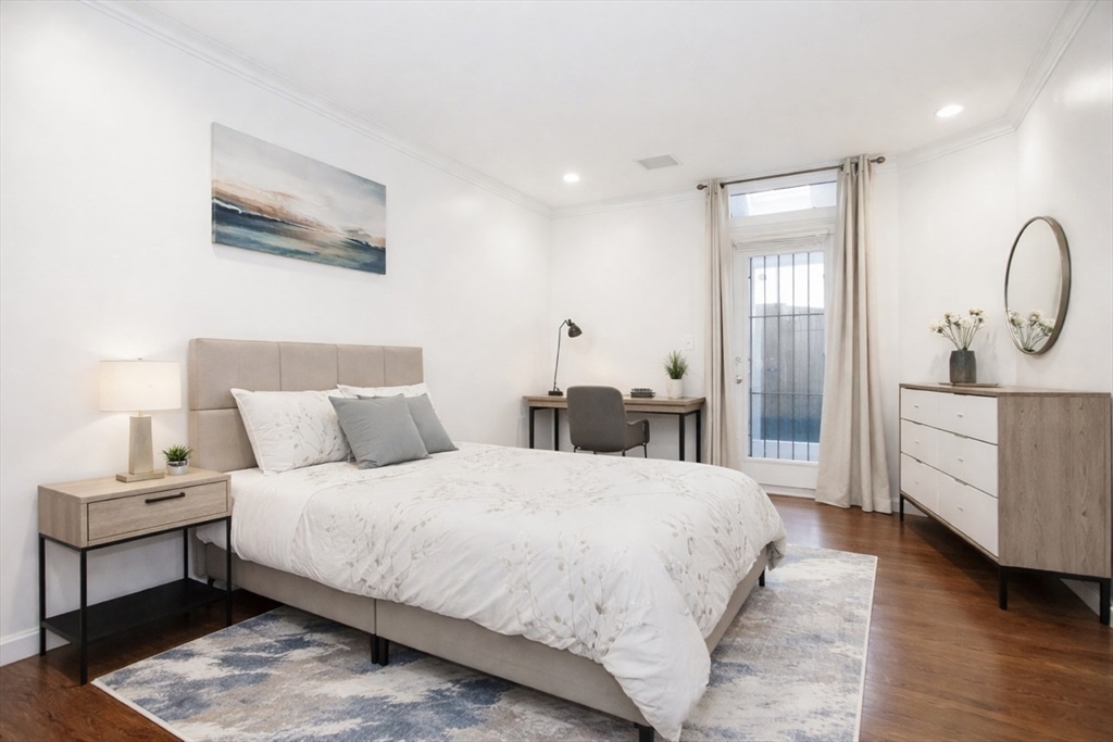 Beautifully renovated parlor duplex on the sunny side of tranquil Marlborough Street, offering direct access to a full parking space and a private garden. This exceptional residence is set within a grand 24-foot-wide building and features three bedrooms and three bathrooms, with oversized windows, soaring ceilings, and wood-burning fireplace. The home seamlessly blends classic elegance with modern comfort, featuring a central sitting room, a formal oval living room, and a high-end kitchen with new European appliances that opens to the dining area. A versatile home office or third bedroom adds flexibility to the layout. The spacious primary suite offers three generous closets and a marble en-suite bath with a soaking tub. The second bedroom is served by an additional full bath & provides access to the mudroom, garden and private parking.Located within a boutique four-unit building this home is just steps from the Charles River, Newbury St., Public Garden & some of Boston’s finest dining