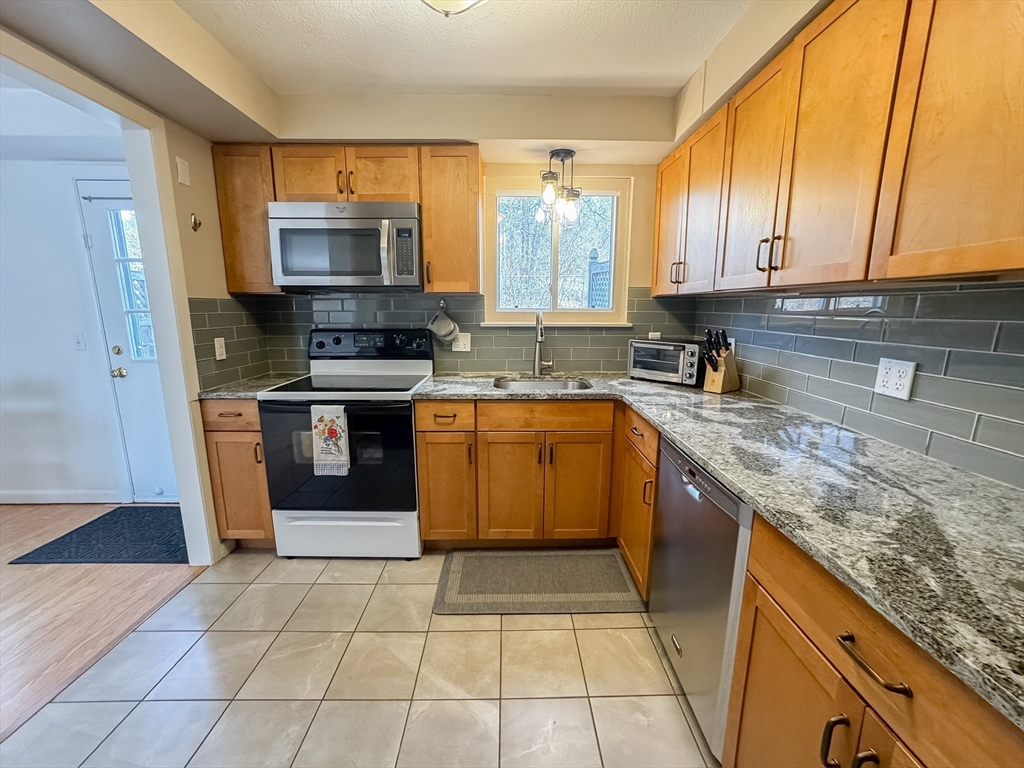 OPEN HOUSES CANCELLED Move-in ready 2 Bedroom 1 Full Bath townhouse condo in a highly desirable location with a PVTA bus stop right at the entrance—perfect for commuters and easy access to UMass Amherst and surrounding colleges. This bright and stylish home features an upgraded kitchen with granite countertops, modern finishes, and in-unit laundry for everyday convenience. Enjoy seamless indoor-outdoor living with a private stone patio overlooking a peaceful wooded backdrop—ideal for relaxing or entertaining. Centrally located near restaurants, shopping, and local amenities, this low-maintenance condo offers the perfect blend of comfort, convenience, and lifestyle. Ideal for owner-occupants or investors seeking strong rental appeal in the Amherst area. Crocker Farm Elementary is at your back door!
