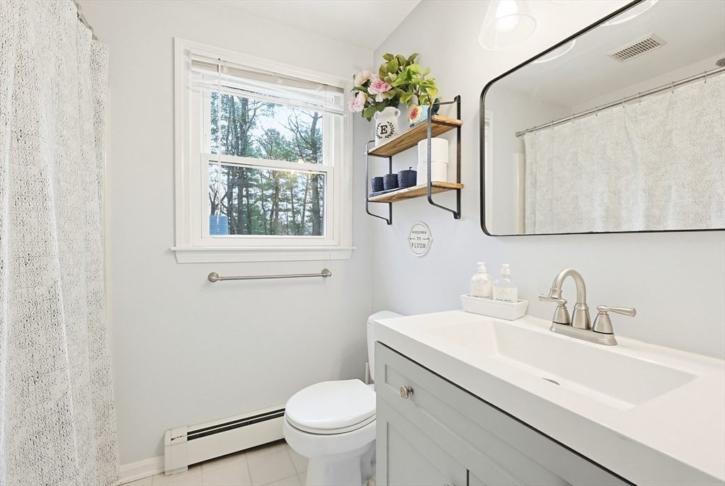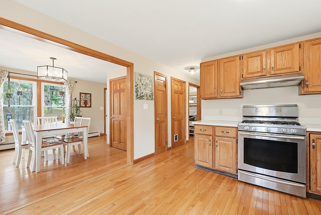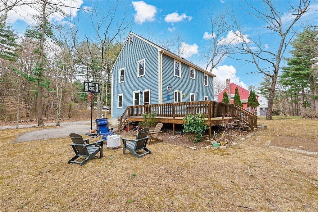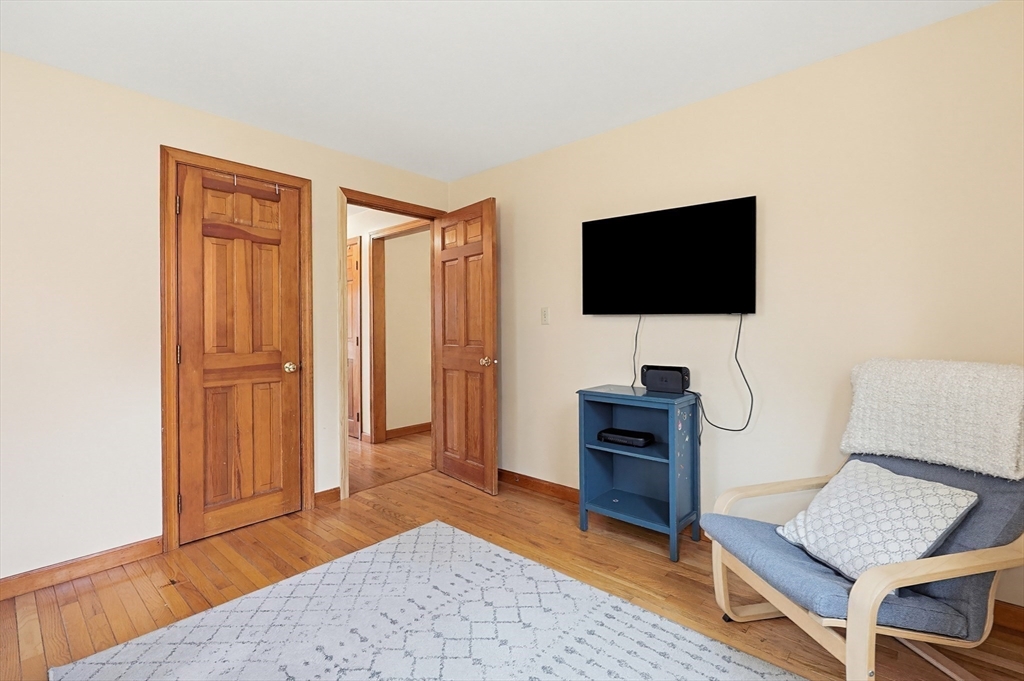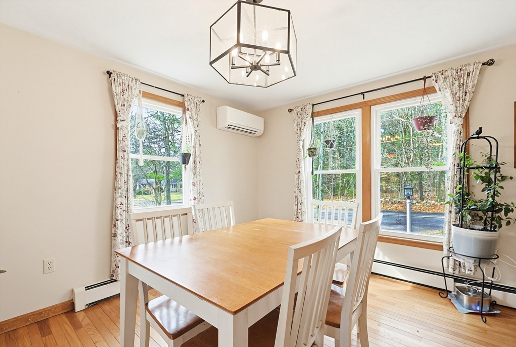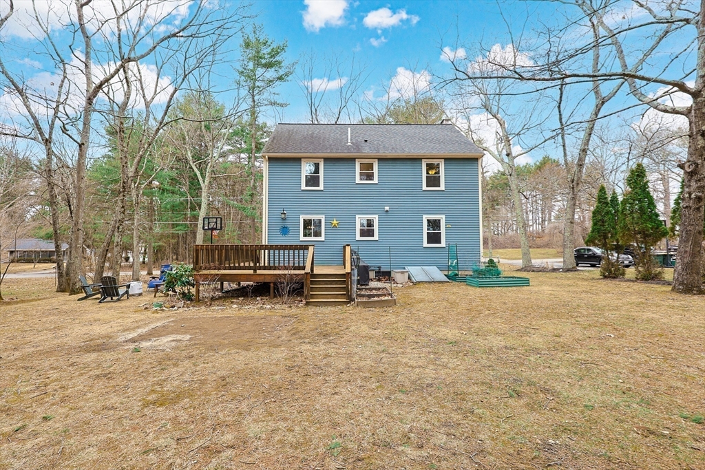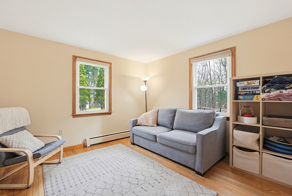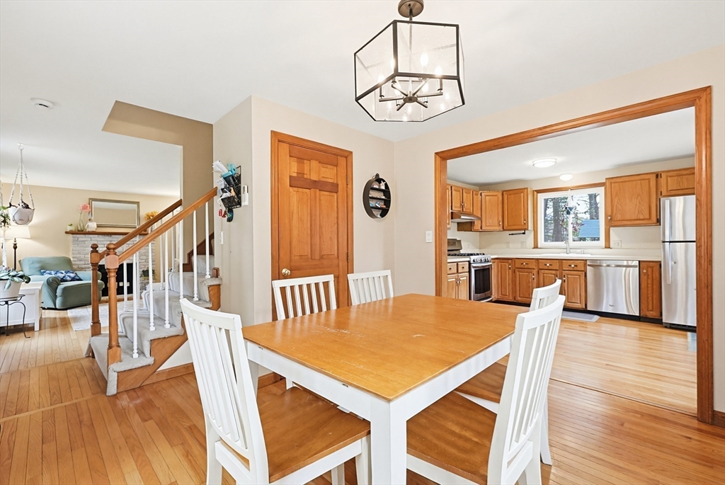 This move-in-ready, classic colonial features a bright, functional layout filled with natural light and hardwood floors throughout the first level. The kitchen flows seamlessly into the dining room, while a bonus room offers space for a home office or playroom. Relax in the sun filled front living room, complete with a wood burning fireplace. A full bathroom rounds out the main floor. Upstairs features a spacious front-to-back primary with two closets and a tucked away nook ideal for working from home. Two additional bedrooms offer generous closet space, and a second full bathroom completes the level. An expansive deck overlooks the backyard, where mature trees and thoughtfully planted garden beds feature multiple berry plants and vibrant perennials. This property truly shines as it comes to life each spring. Major updates include mini-split system in 2016, Bosch boiler in April 2017, Bosch water heater in June 2016 & all windows in 2022.