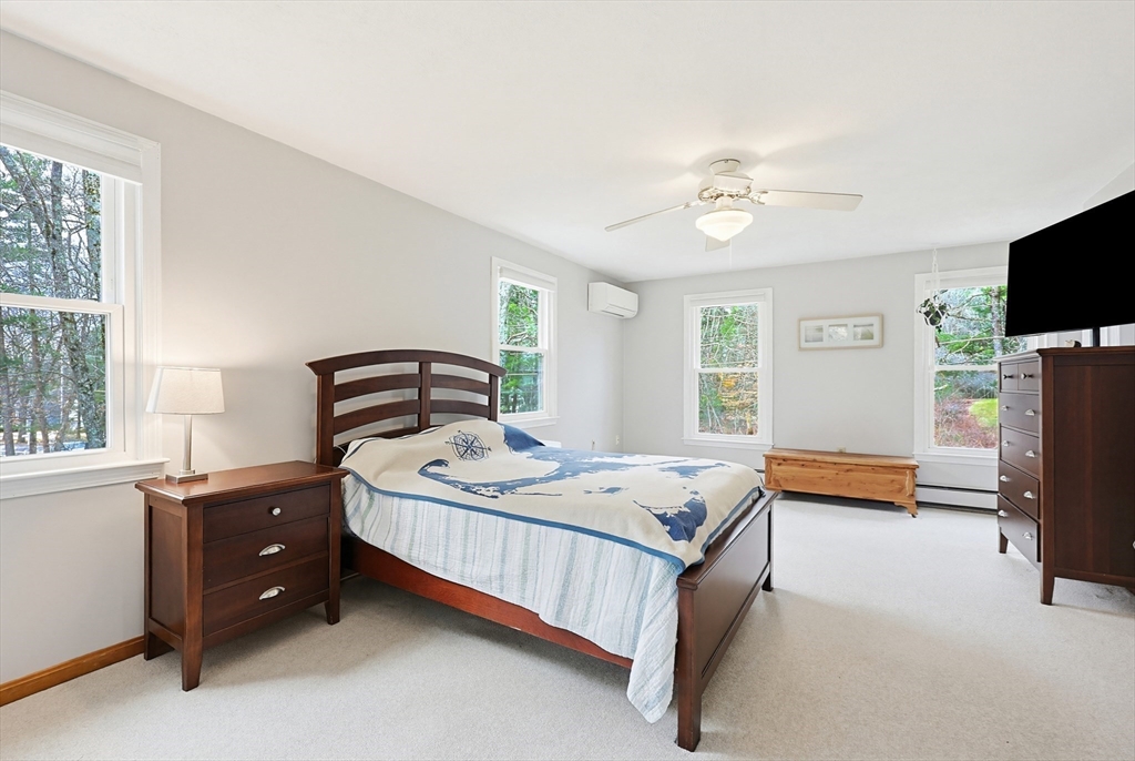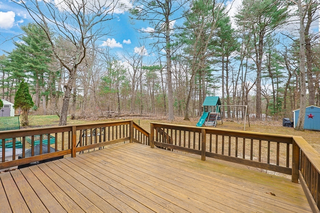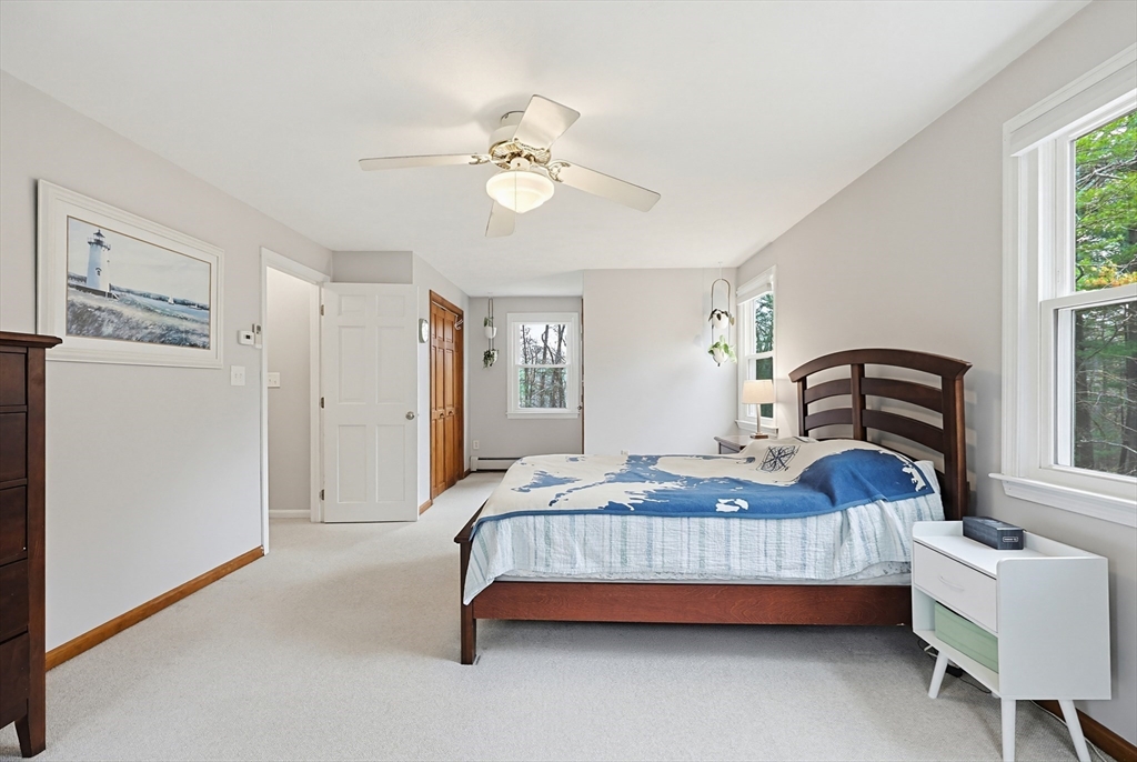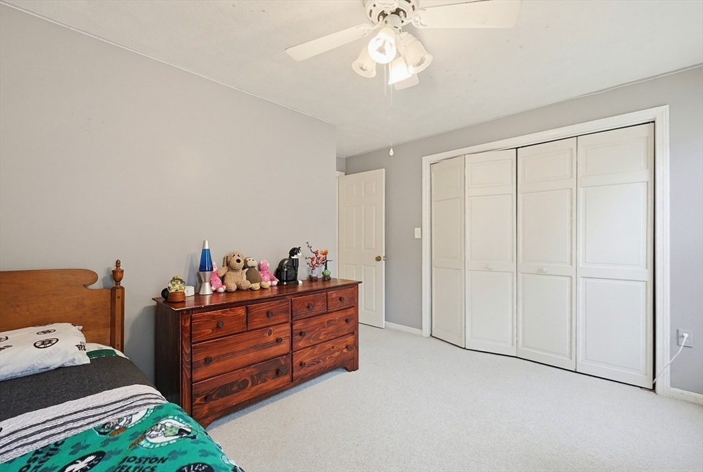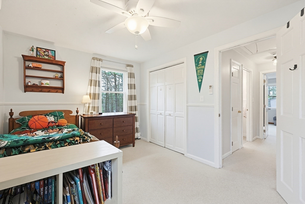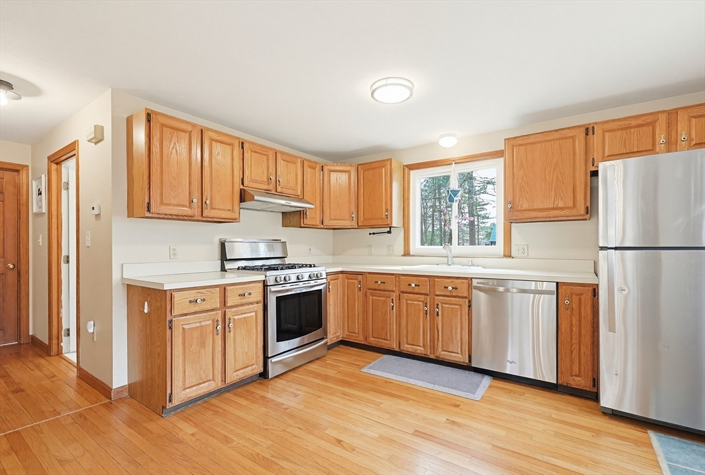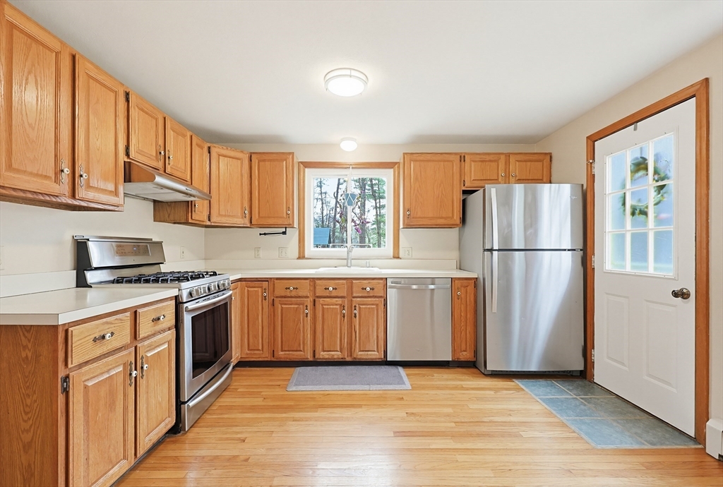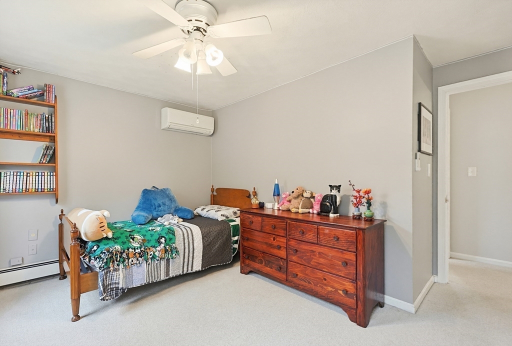 This move-in-ready, classic colonial features a bright, functional layout filled with natural light and hardwood floors throughout the first level. The kitchen flows seamlessly into the dining room, while a bonus room offers space for a home office or playroom. Relax in the sun filled front living room, complete with a wood burning fireplace. A full bathroom rounds out the main floor. Upstairs features a spacious front-to-back primary with two closets and a tucked away nook ideal for working from home. Two additional bedrooms offer generous closet space, and a second full bathroom completes the level. An expansive deck overlooks the backyard, where mature trees and thoughtfully planted garden beds feature multiple berry plants and vibrant perennials. This property truly shines as it comes to life each spring. Major updates include mini-split system in 2016, Bosch boiler in April 2017, Bosch water heater in June 2016 & all windows in 2022.