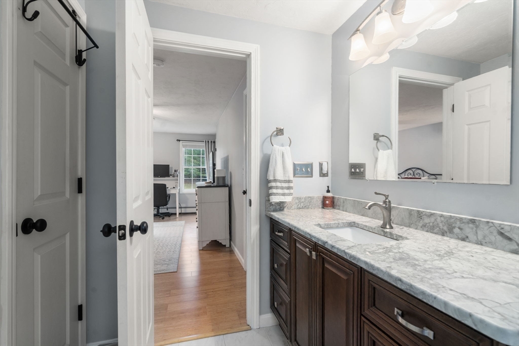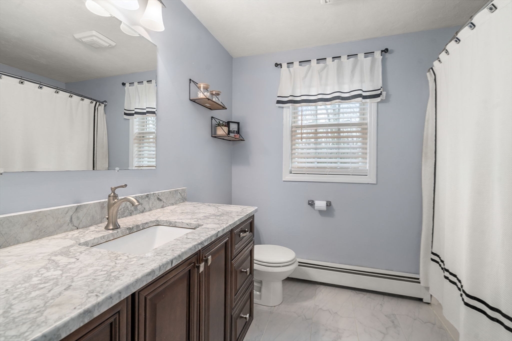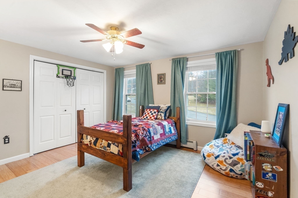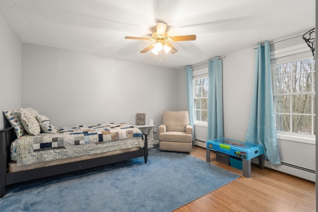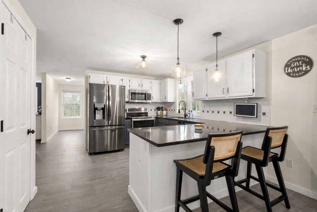 Welcome to this tastefully updated colonial set on an expansive 2.6 acre lot, situated on a cul-de-sac with sidewalks in one of Rutland’s most desirable neighborhoods. Discover gleaming hardwood floors throughout and a bright,open layout. A stunning cathedral family room with a cozy fireplace serves as the heart of the home—flooded with natural light. The kitchen features granite countertops, ss appliances, a bar with seating, and a breakfast area. A formal dining room with wainscoting, large living room/playroom, laundry room, and updated half bath with shiplap complete the first floor. Upstairs, you’ll find three generously sized bedrooms, including a peaceful primary retreat with an updated bath, and TWO walk in closets. Two more nice-sized bedrooms and an updated common bath finish off the second floor. Sip your coffee on the covered, or large uncovered deck overlooking a big backyard. 8.5mi to Worc airport 6mi to Holden center. Enjoy a 2 car garage with bsmt access, New roof 2020