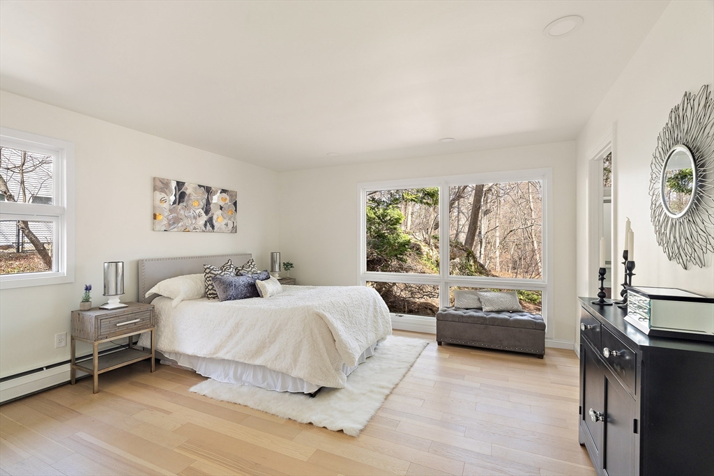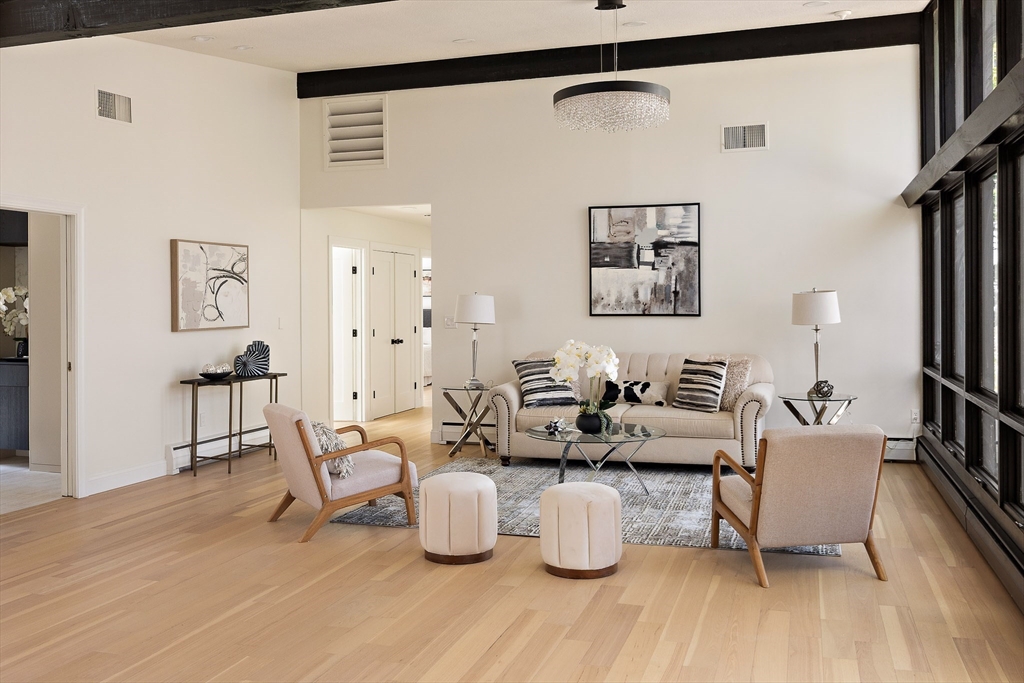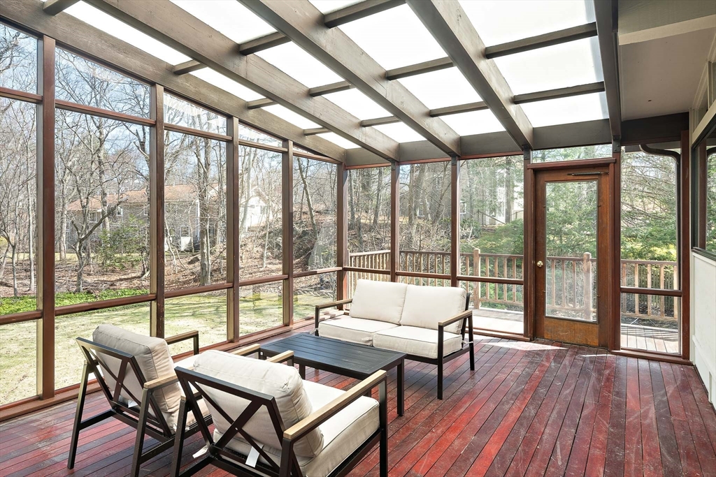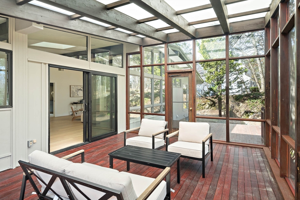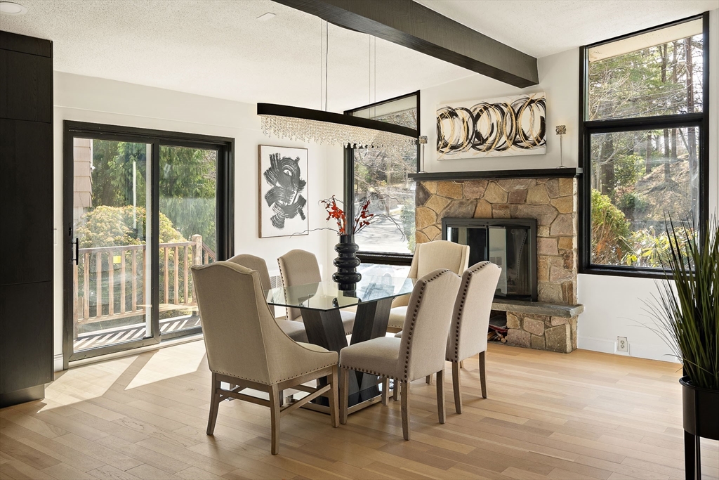 Beautifully Renovated Mid-Century Modern Gem! Nestled on a sprawling 24,459 SF landscaped lot, this home blends timeless mid-century design with modern updates. The grand living room wows with soaring beam ceilings, a wall of windows, and views of the screened porch and serene backyard. The newly renovated kitchen features sleek cabinetry, countertops, appliances, and a peninsula with easy access to the deck. The main level boasts three spacious bedrooms, two updated baths, and a cozy wood-burning fireplace. The primary suite overlooks the lush yard, offering a peaceful retreat. The finished lower level is ideal for guests or extended family, with a great room, kitchenette, patio access, a fourth bedroom, full bath, studio, bonus room, and abundant storage. New flooring, fresh paint, updated baths, and select windows/doors complete this move-in-ready home. A rare find combining architectural charm, modern comfort, and flexible spaces—this one’s a must-see!