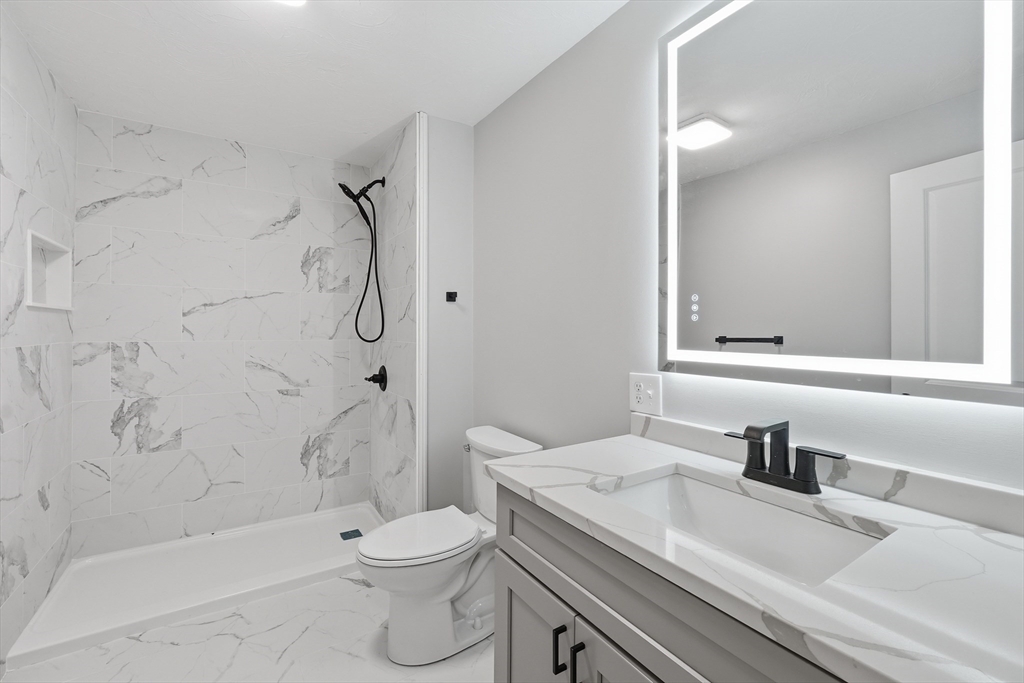 Welcome to this beautiful renovated cape set in a highly sought after location. Spacious open concept cape with 5 bedrooms and 2 full bathrooms. Renovation includes new heating system,plumbing,cabinets,granite,decks,hardwood floors and much more. Large deck looking out to nice yard. The main floor features a warm open concepts layout. The kitchen flows into a living room/dinning room, bedroom with walk out deck and full bathroom. The second floor has 3 bedrooms and a full bathroom with washer/ dryer hook up. Full basement waiting to be finished for extra space. Plenty of parking space for the whole family. Property is vacant and easy to show. Come see and you will love it.