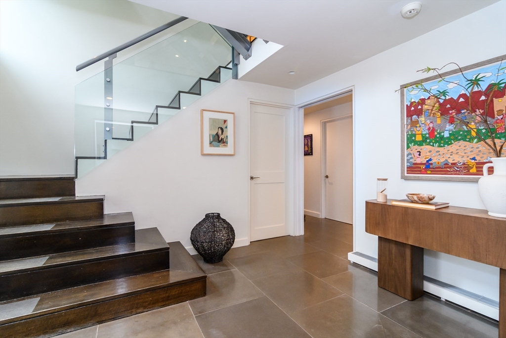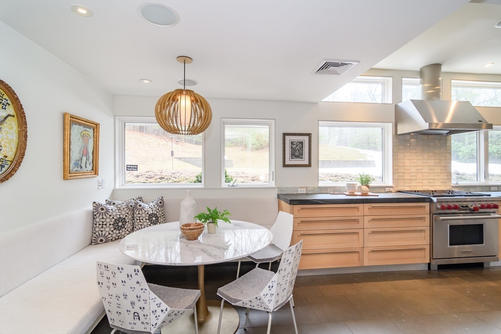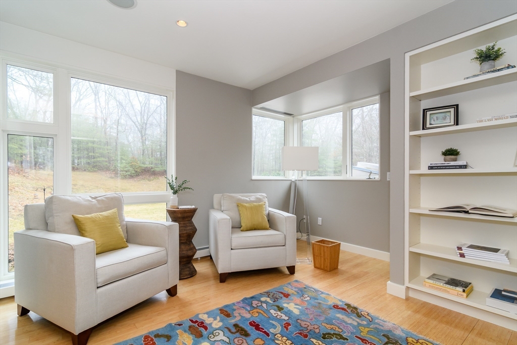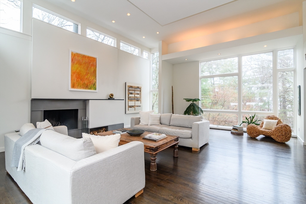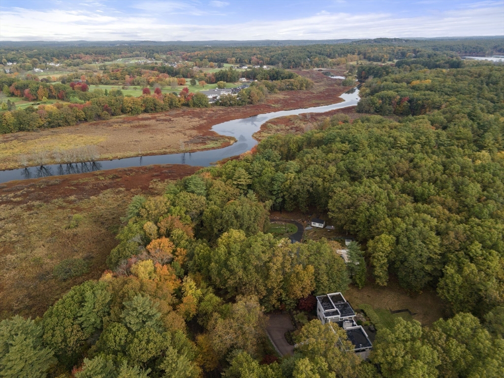 Impeccable custom-built contemporary (2006) set on 1.5 acres with sweeping views of the Sudbury River, tucked on a quiet cul-de-sac in one of Wayland’s most sought-after locations. Thoughtfully designed with a versatile, modern layout, this home seamlessly blends striking architecture with comfortable living. Dramatic walls of windows flood the living spaces with natural light, highlighting clean lines and an open, airy flow. The warm European-style kitchen offers both function and style, ideal for everyday living and entertaining. A sculptural staircase serves as a stunning architectural centerpiece. The first floor features a separate entrance studio/office with full bath, a gym, and a 500-bottle wine cellar. Outside, a versatile sport court offers the perfect setting for recreational play, complementing the home’s exceptional indoor-outdoor lifestyle. Serene river views create a true retreat setting, just moments to top-rated schools, conservation trails, and major commuter routes.
