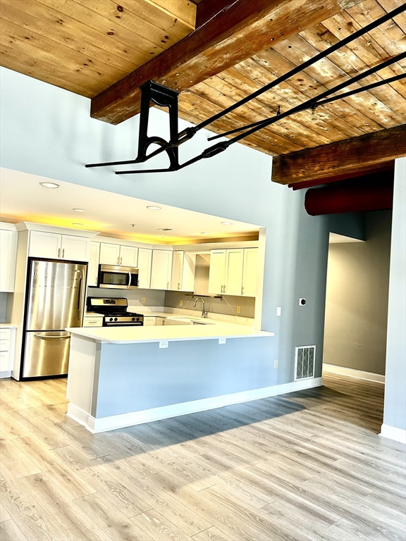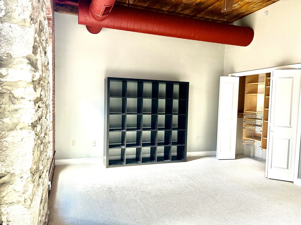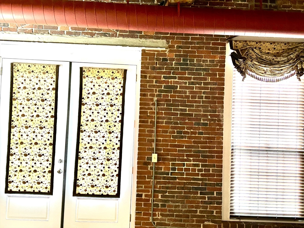 Welcome to Brookside Mill, a beautifully renovated 1-bedroom, 1-bath condo that blends historic charm with modern style. Offering about 1,100 square feet on the first level, this unique home features exposed brick and stone walls, along with oversized windows and custom drapery that fill the space with natural light. The updated kitchen includes new flooring, sleek cabinetry, and quartz countertops, perfect for everyday living and entertaining. An open living and dining area provides a spacious, inviting layout, while the newly carpeted bedroom offers a comfortable retreat. Double French doors lead to a courtyard overlooking Stony Brook, ideal for relaxing outdoors. A rare heated garage adds year-round convenience. This one-of-a-kind home combines character, comfort, and modern upgrades in a truly special setting. Don’t miss the opportunity to make this unique condo your new home, where contemporary living meets historic elegance.