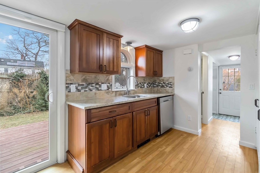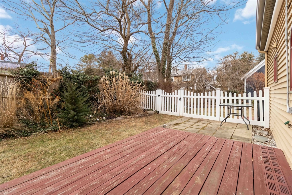 NO MONTHLY CONDO FEE!! Get into Natick's booming housing market w/ this townhouse style 2 bed 1.5 bath condo w/ the feel of a single family. This is 1 of 2 units in an antique Victorian structure on a corner lot where your driveway access is on Maple St. Granite & stainless steel kitchen w/ natural cherry cabinets. Slider off the kitchen to your private deck, patio space and fenced in yard are a perfect space for grilling and relaxing. Laundry room on the main level along w/ a half bath for added convenience of living. The second floor level offers 2 generous size bedrooms & a renovated bath with heated tile floor. A welcoming front porch and professional landscaped grounds rounds off this home. Heating/cooling provided by recently installed mini-splits in each room. The unfinished basement offers some storage space. Great location in town close to Natick's vibrant center, including the Common which hosts yearly events, TCAN, the Commuter Rail, shops, restaurants, coffee shops & more.
