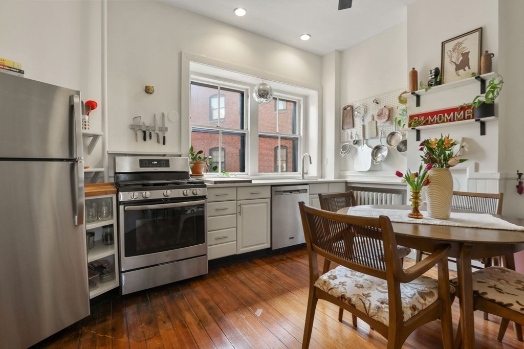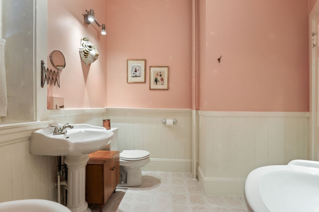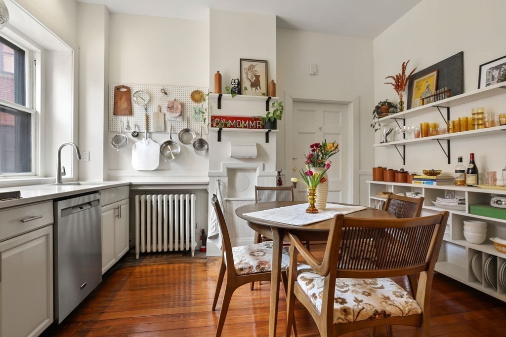 This stunning condo near the Greenough house, blends historic charm with modern versatility. The elevated first floor corner unit showcases expansive windows, soaring ceilings & wood floors. Situated in the heart of JP, in a highly desirable building, it brings convenience at your doorstep. Across from Cafe Nero & Dunkin, near the Arnold Arboretum, the public library, the post office, Jamaica Pond & all the local restaurants, shops & cafes. Inside, a flexible floor plan offers a spacious kitchen, with ample room for a large island. Two oversized windows above the sink overlook a peaceful shared patio & courtyard, perfect for grilling, relaxing& entertaining. The inviting living room is bathed in natural light with a cozy wood-burning fireplace & custom built-in bookshelves. The primary bedroom has a gigantic walk-in closet with built-in drawers& a laundry room. A second bedroom has a large window. The freshly painted bathroom has a claw foot tub & two sinks. Bus 39 & T stop nearby.