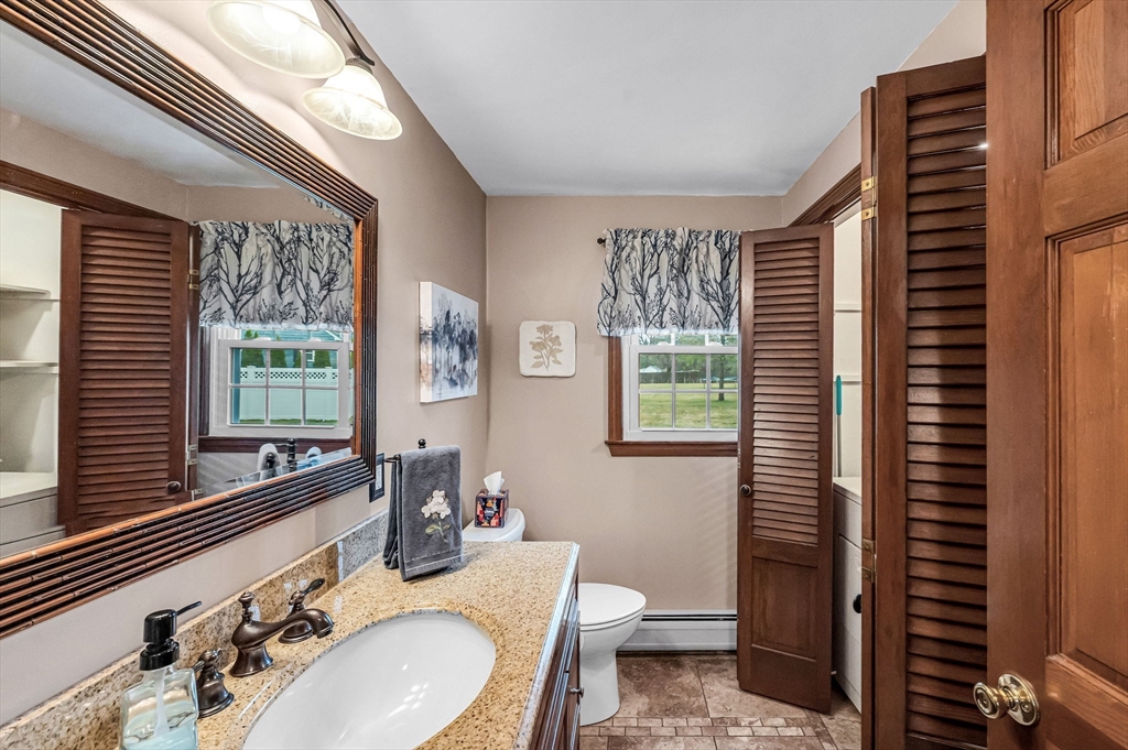 Welcome to this charming Colonial, perfectly situated on a lovely corner lot in Wilbraham. You’ll appreciate the timeless appeal & inviting feel this home offers. Inside, you’ll find a spacious front-to-back living room. The separate dining room provides the perfect setting for gatherings, while the family room features custom built-ins & a gas fireplace—creating a warm & welcoming space to unwind. The home offers 4 bedrooms and 1.5 baths, along with the convenience of 1st floor laundry. Hardwood floors flow throughout, adding character & continuity. One of the true highlights is the bright, heated sunroom with a vaulted ceiling with beautiful natural wood planks—an inviting retreat year-round. Step outside from here onto the deck, perfect for enjoying morning coffee or summer evenings. Additional features include a partially finished basement for added living space, and a 2-car garage for convenience. With its classic charm & inviting spaces, this home is ready for its next chapter.