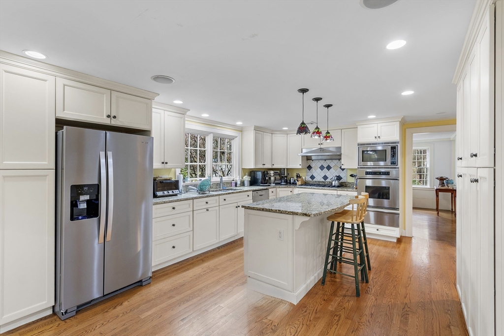 Elegant Colonial with exceptional curb appeal in Wellesley Hills’ coveted Cliff Estates. This beautifully updated home offers 4 beds/3.5 baths, and a flexible floor plan for everyday living and entertaining. The front-to-back living room with fireplace is filled with natural light, while the formal dining room adds classic charm. The renovated eat-in kitchen features an island, granite countertops, stainless steel appliances, and a sunny breakfast area opening to the patio. A spacious family room connects to a cozy reading nook and home office. Upstairs includes a serene primary suite, two additional bedrooms, and a private bedroom/bath suite over the garage, ideal for guests, au pair, or bonus space. The finished lower level offers playroom, laundry, and storage. Private level yard with mature plantings, patio, and attached 2-car garage. Convenient to schools, Wellesley Hills shops, commuter rail, and Route 9.