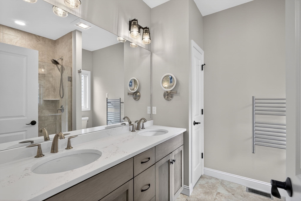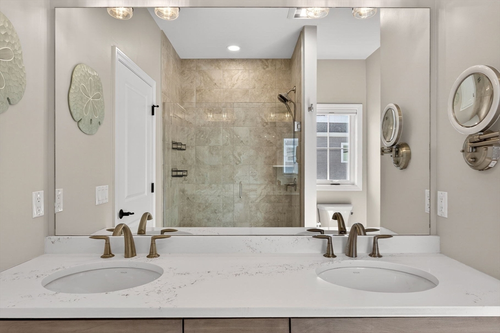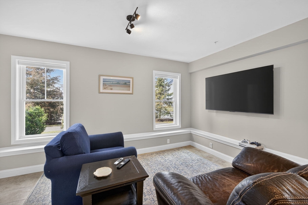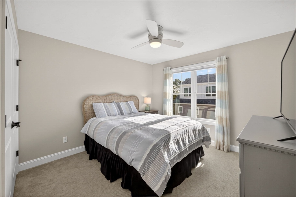 Stunning end-unit townhome in Symington Woods at The Pinehills offering exceptional quality and design. This sun-filled “Binnacle” floor plan features a beautifully finished, tiled lower level with abundant natural light. The open-concept kitchen, dining, & fireplaced living area is surrounded by windows & opens to a private deck. The upgraded kitchen includes KitchenAid stainless steel appliances, a pantry, extended center island w/shelving and cabinet pull-outs galore, granite countertops, and under-cabinet lighting. Hardwood floors & crown molding enhance the first level, complemented by a beadboard-accented powder room. The first-floor primary suite offers a walk-in closet & a tiled glass shower w/heated towel warmer. Additional highlights include a well-appointed laundry room, two spacious second-floor rooms w/a full bath, a sunlit lower level w/custom built-ins, tankless water heater, and a two-car garage with built-in storage. SUBJECT TO: Seller Finding Suitable Housing.
