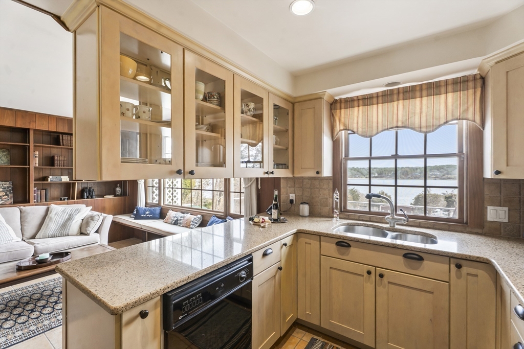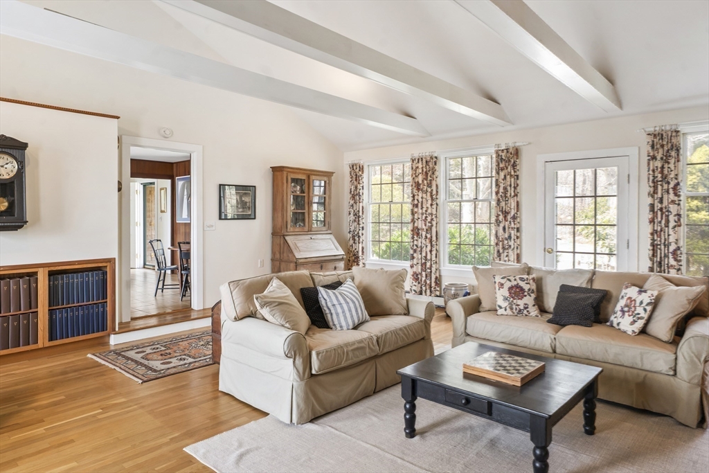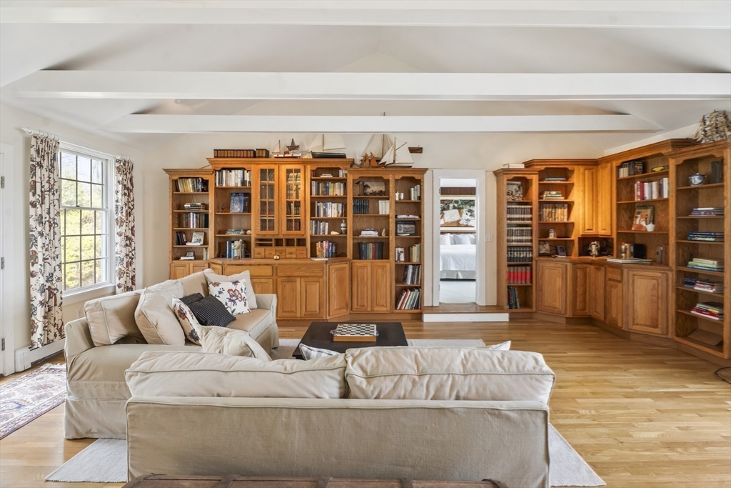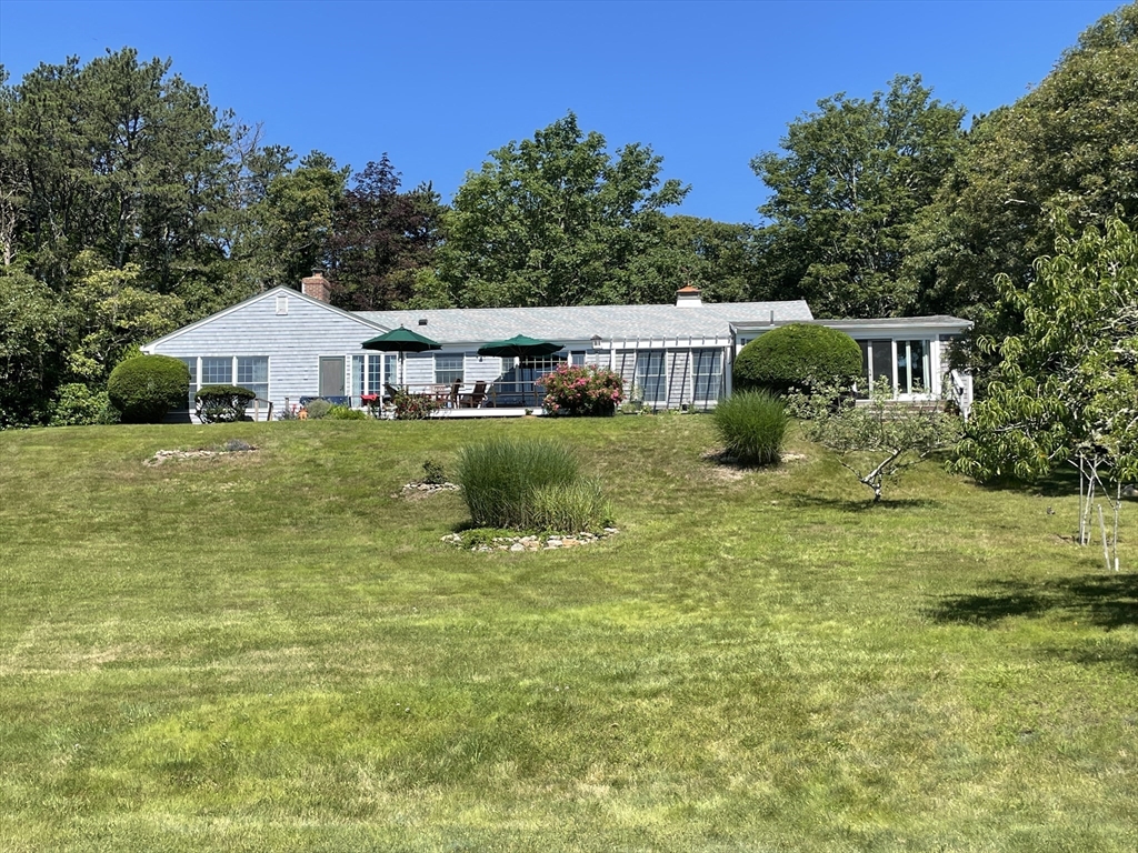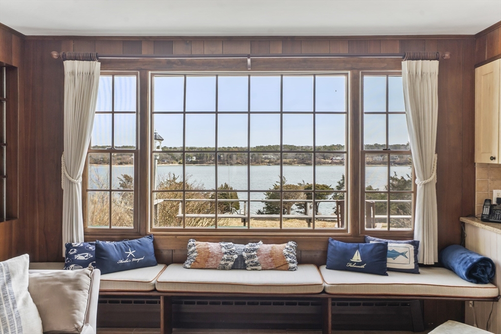 Perched high above Lagoon Pond, this exceptional Martha's Vineyard estate offers a rare convergence of natural beauty, refined comfort, and Island living at its finest. Set on 2.25 secluded acres, panoramic views stretch across the shimmering waters, a private haven for kayaking, sailing, and peaceful exploration. Inside, four bedrooms and three full bathrooms are complemented by generous windows framing breathtaking water views from nearly every room. A family room and library, formal living room, and a private guest suite on the far side of the residence provide ample space for all. Outside, the lawn sweeps to the water's edge, where a sandy shoreline invites you to launch a kayak, cast a line, or linger over a sunset picnic. A detached three-car garage with a finished room above offers generous storage for watercraft, paddleboards, and all the trappings of Island adventure. Minutes from shops, restaurants, and the harbor, yet worlds away in feeling.