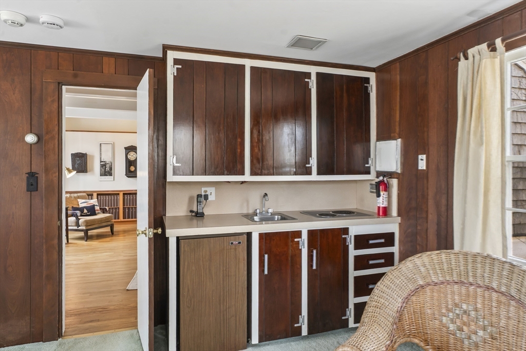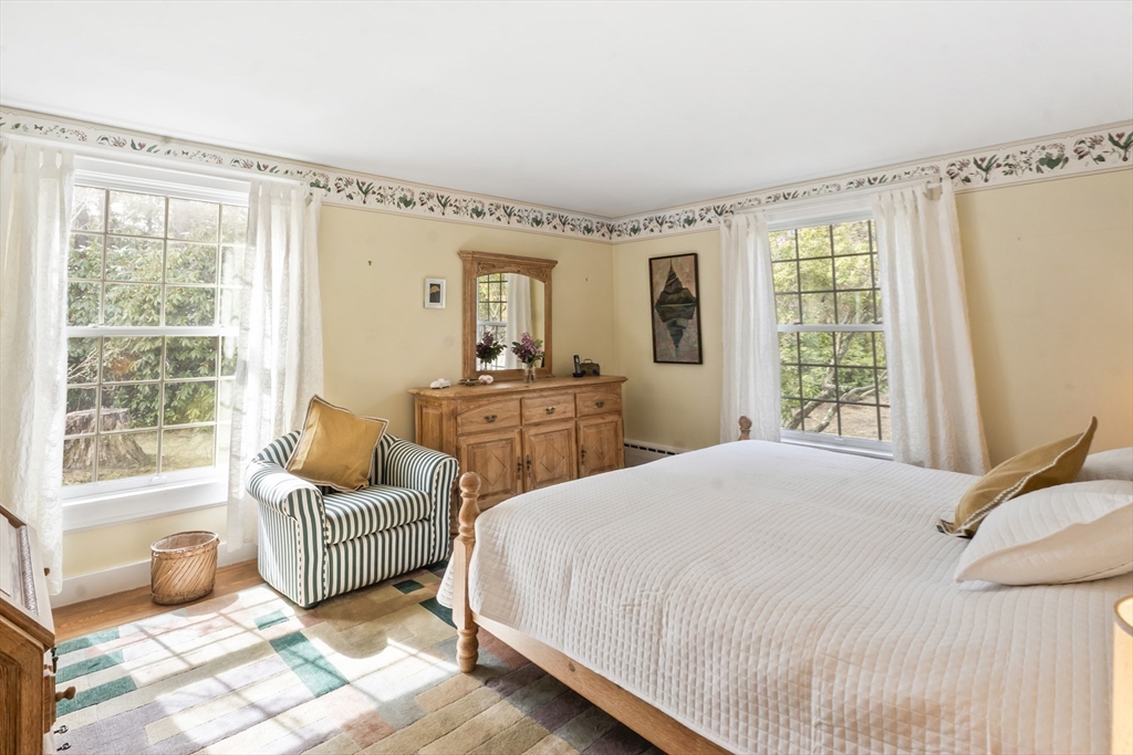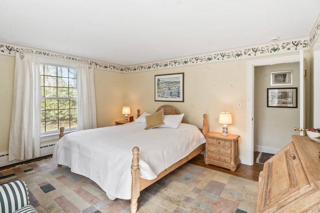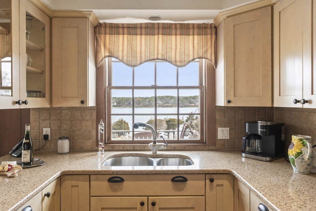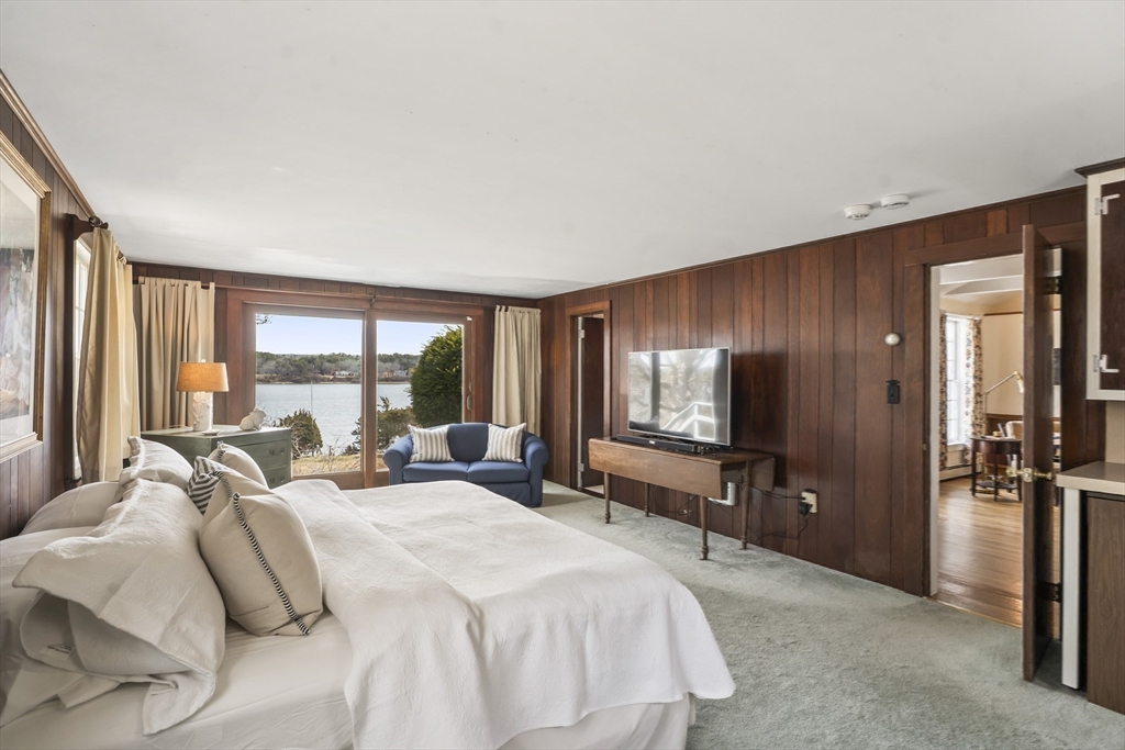 Perched high above Lagoon Pond, this exceptional Martha's Vineyard estate offers a rare convergence of natural beauty, refined comfort, and Island living at its finest. Set on 2.25 secluded acres, panoramic views stretch across the shimmering waters, a private haven for kayaking, sailing, and peaceful exploration. Inside, four bedrooms and three full bathrooms are complemented by generous windows framing breathtaking water views from nearly every room. A family room and library, formal living room, and a private guest suite on the far side of the residence provide ample space for all. Outside, the lawn sweeps to the water's edge, where a sandy shoreline invites you to launch a kayak, cast a line, or linger over a sunset picnic. A detached three-car garage with a finished room above offers generous storage for watercraft, paddleboards, and all the trappings of Island adventure. Minutes from shops, restaurants, and the harbor, yet worlds away in feeling.