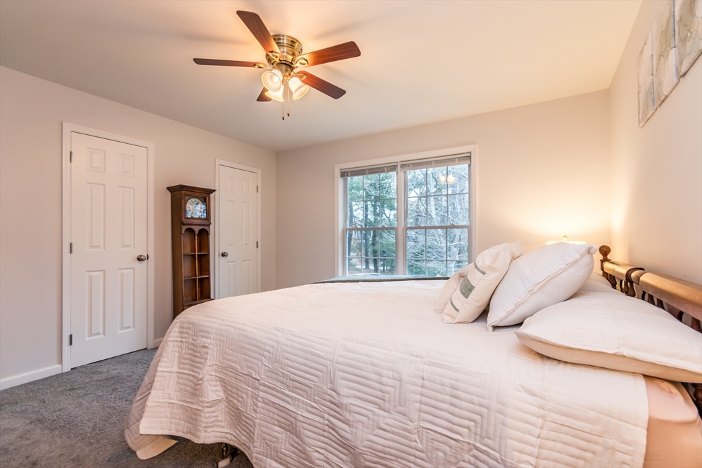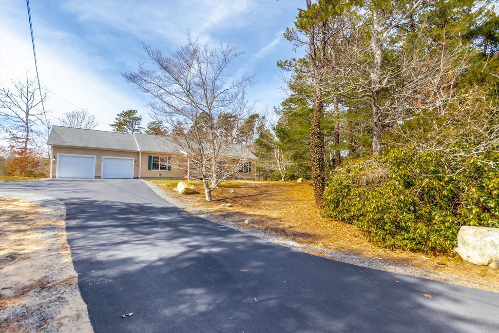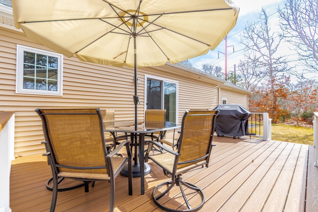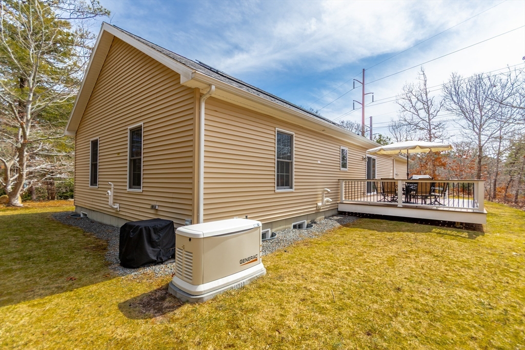 This well maintained 10 year young easy living one level Ranch offering 3 bedrooms and 2 full baths, along with association rights to Upper Mill Pond. Situated on over an acre of land, the property provides both space and privacy. The open concept floor plan features a spacious kitchen with an island and breakfast bar that flows seamlessly into the dining area, complete with a slider leading to a large deck, perfect for summer entertaining. The primary bedroom includes a private full bath, while a convenient mudroom with laundry adds everyday functionality. Additional highlights include a full house generator, central air, gas heat an inviting front porch, two car garage and leased solar panels. This home combines comfort, practicality, and a peaceful setting. All parties to verify information contained herein.