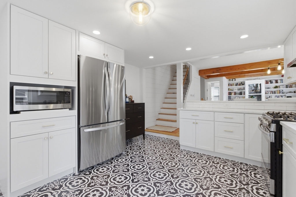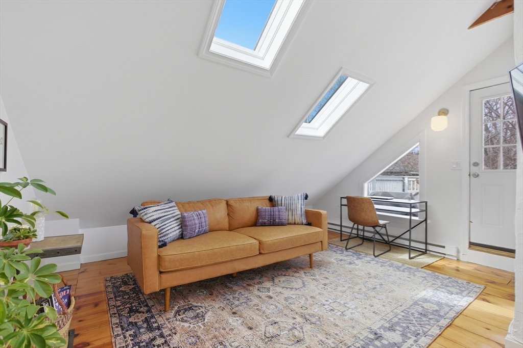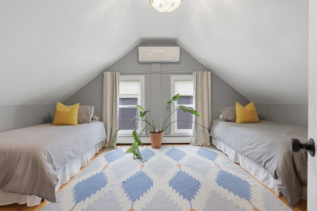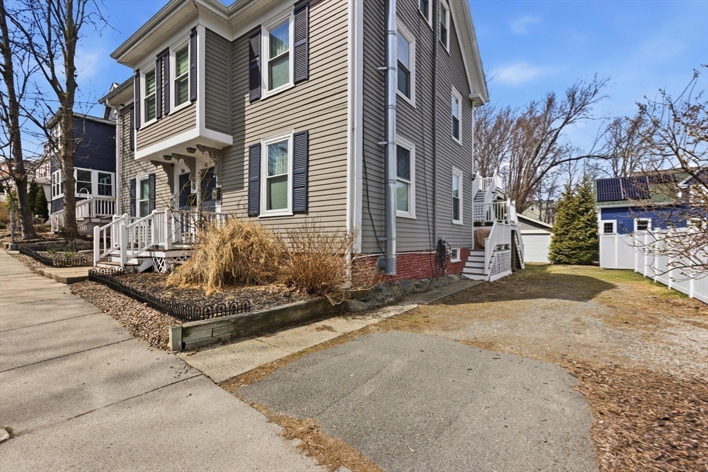 Perfectly situated in highly desirable Adams Village, this exceptional duplex offers a seamless blend of timeless charm, generous living space, & thoughtful modern updates.The inviting open-concept living/dining area sets the tone with beautiful exposed beams, handsome built-in bookshelves, & decorative fireplace.The flow continues effortlessly into a spacious, well-appointed kitchen featuring gas cooking, quartz countertops,& SS appliances. Just beyond, a stunning family room showcases dramatic windows & direct access to one of two private decks, offering an indoor-outdoor lifestyle. The first level is complete with a full bath & guest bedroom.Upstairs, you’ll find two generously sized bedrooms,full bath w/ a glass-enclosed shower enhances the second level, along w/ an additional den/family room that opens to an expansive second private deck.Just moments from the shops of Adams Village, this residence blends city convenience w/ neighborhood charm,offering easy access to I93 & transit.