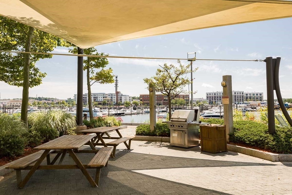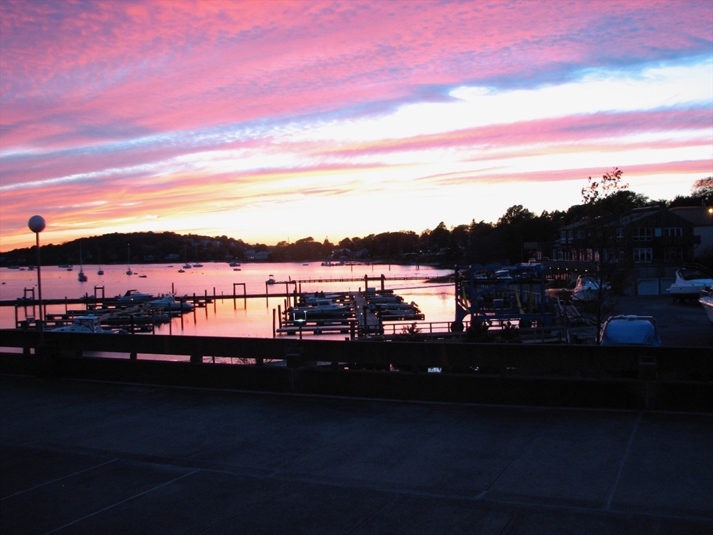 Welcome to desirable Weymouthport! This stunning 1st-floor, two-level condo offers sunset views from your private balcony overlooking the Marina and scenic Back River. Featuring the largest layout in the complex, this 3-bedroom, 2.5-bath unit provides comfortable modern living. The main floor includes a living room, dining room, kitchen, and half bath, while all bedrooms are upstairs, including a primary suite with walk-in closet and full bath. Enjoy in-unit laundry, garage parking, and 24-hour security. The beautifully maintained community features resort-style amenities including a heated pool, tennis and basketball courts, fitness room with sauna, playground, and oceanside grills. HOA covers all utilities. Conveniently located near public transportation, highways, major routes, commuter boat, and Hingham Shipyard. Move-in ready waterfront living!